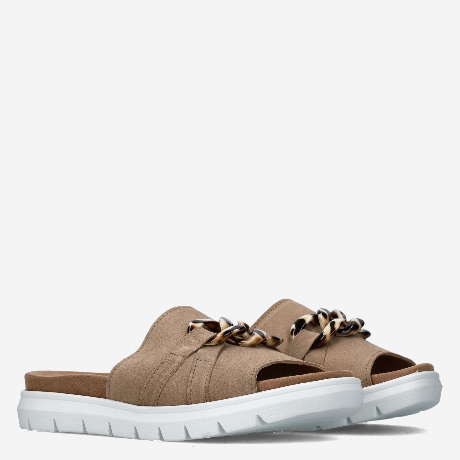 Deze beige Aco Abby damesslipper is gemaakt van leer. Draag deze slipper onder een jurk of rok!