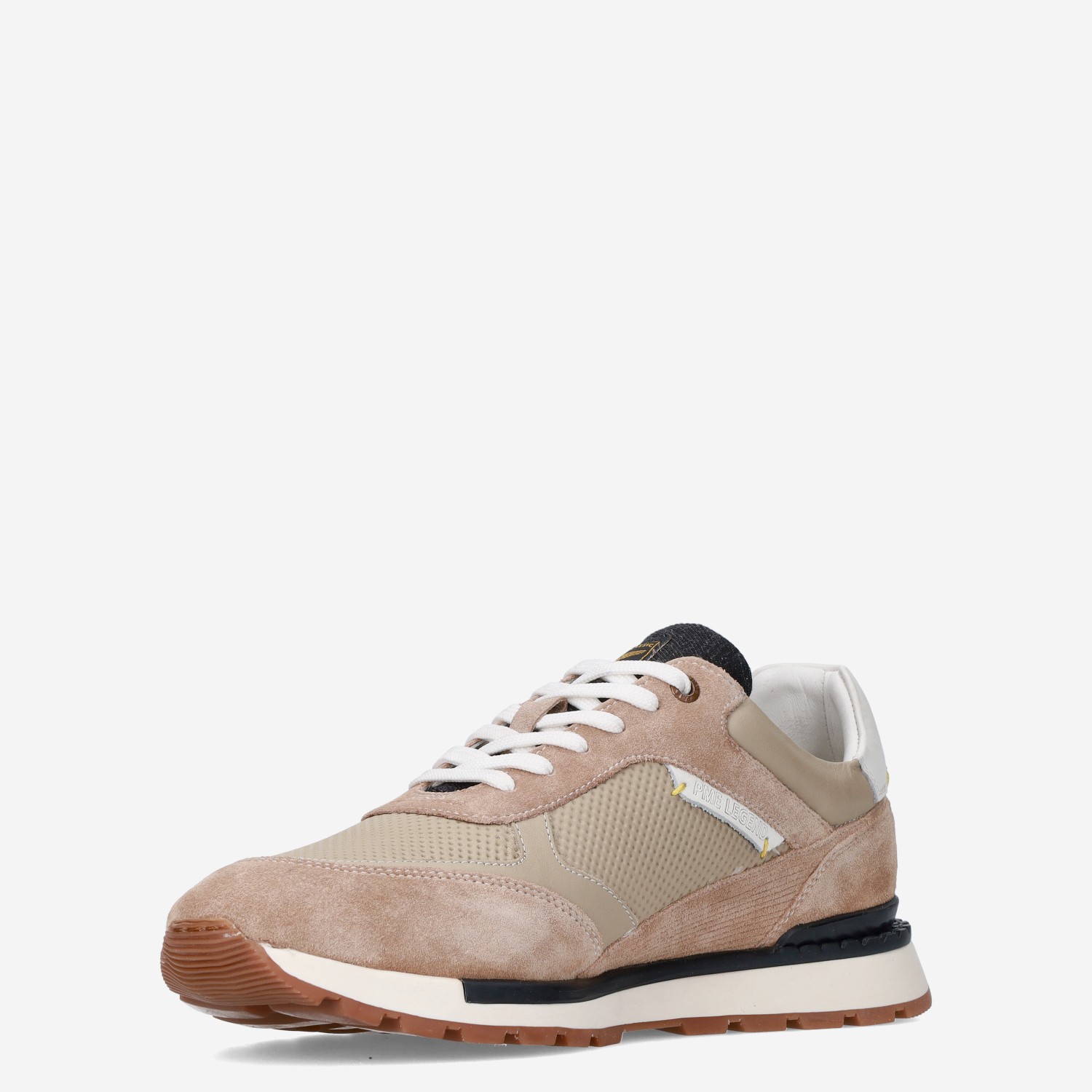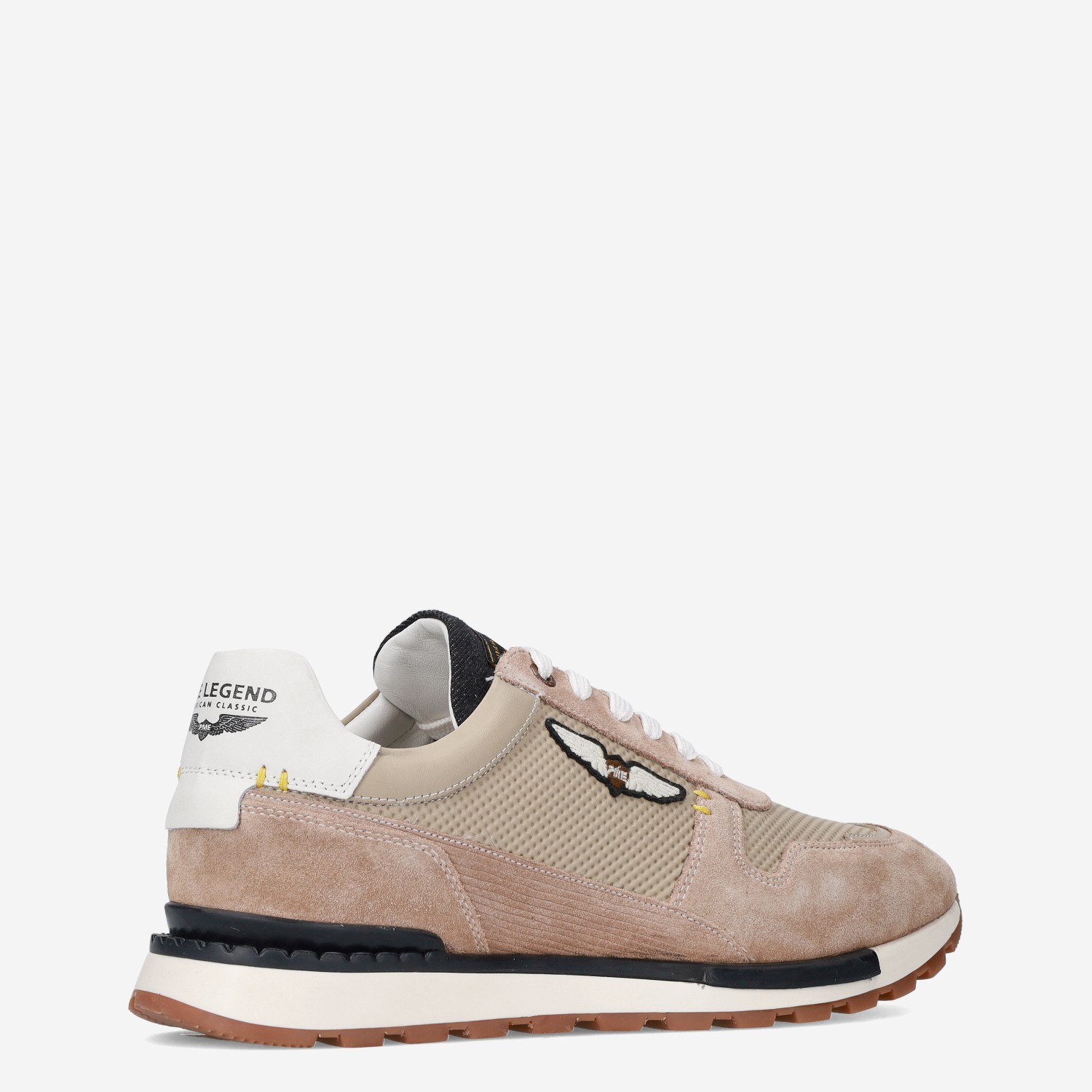 Deze beige PME Legend Aircobra herensneaker is gemaakt van verschillende leersoorten waaronder suède en geperforeerd leer. De sneaker is daarnaast voorzien van PME kenmerken zoals het bekende winged logo en heeft een voorgevormd voetbed. Combineer de sneaker met een pantalon.