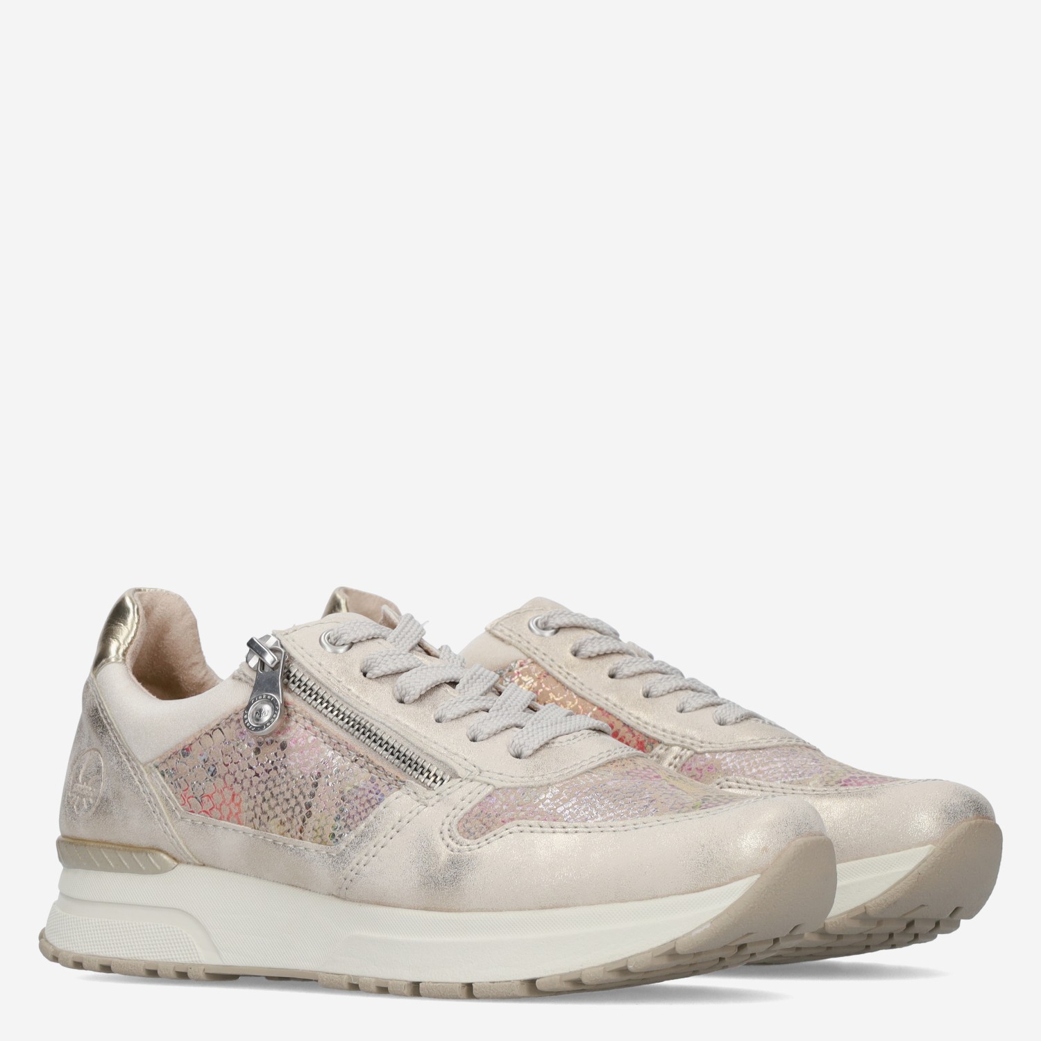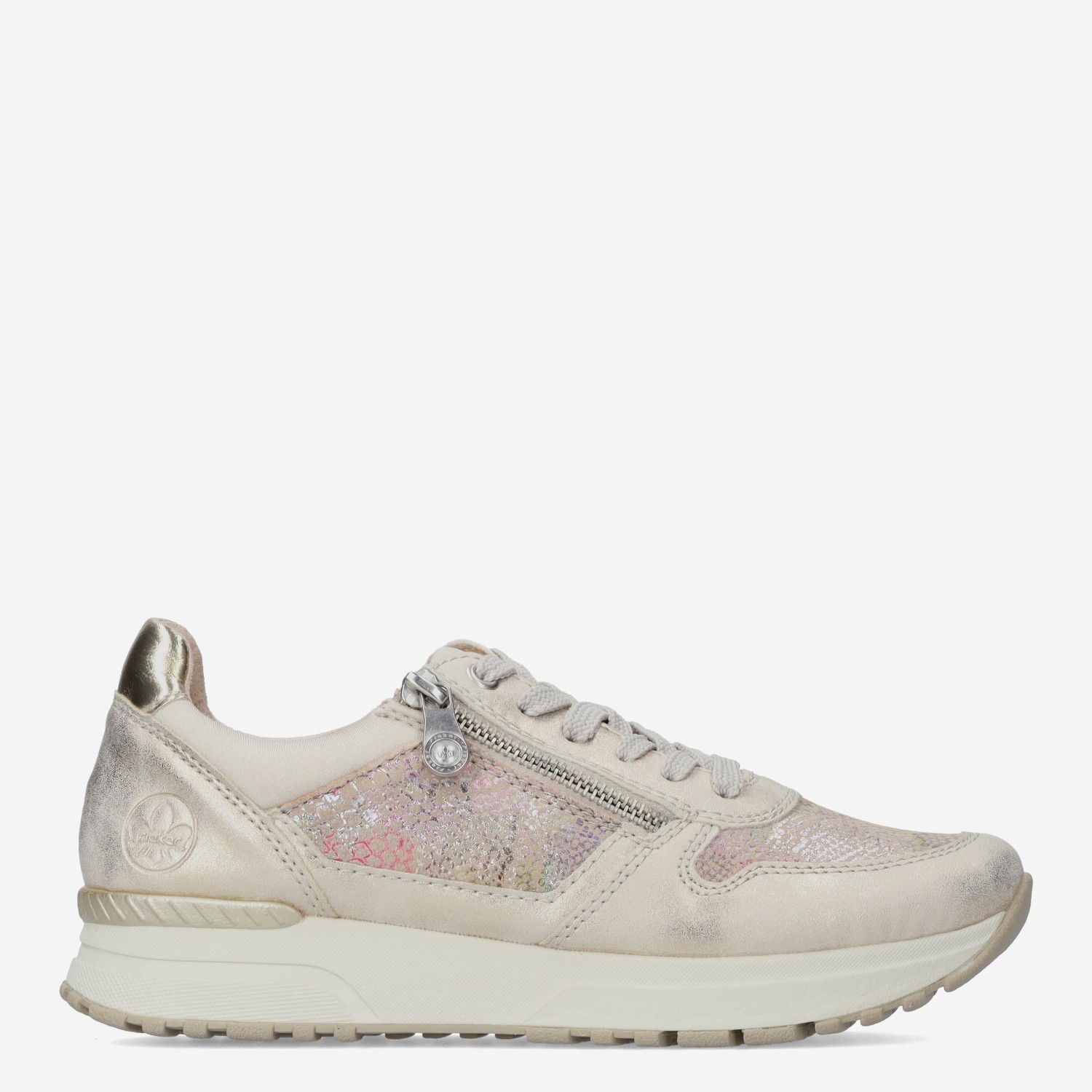 Deze offwhite Rieker Alula G damessneaker is gemaakt van leer in combinatie met synthetische materialen. De sneaker heeft een rits- en vetersluiting voor een gemakkelijke instap. Combineer deze sneaker met je favoriete broek!