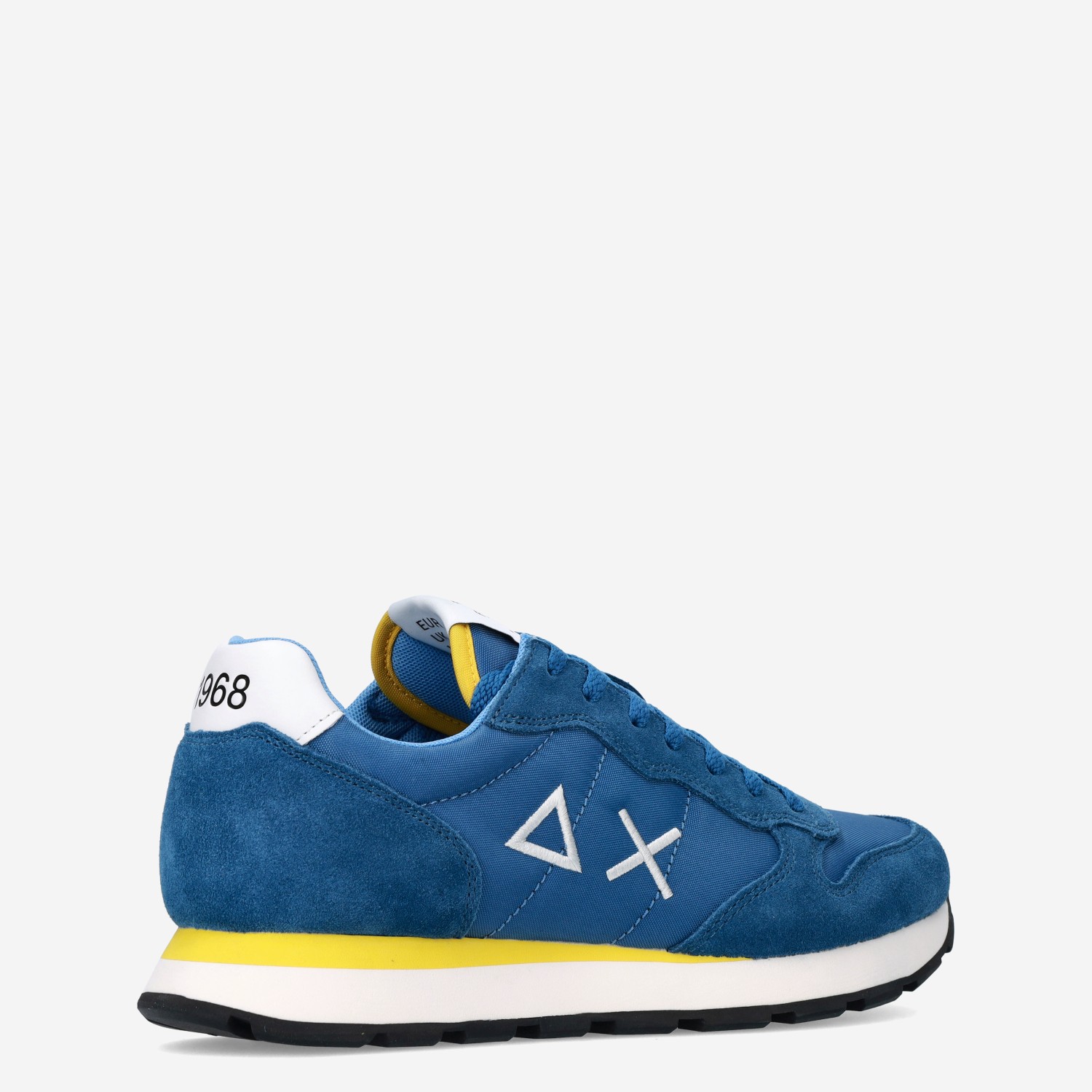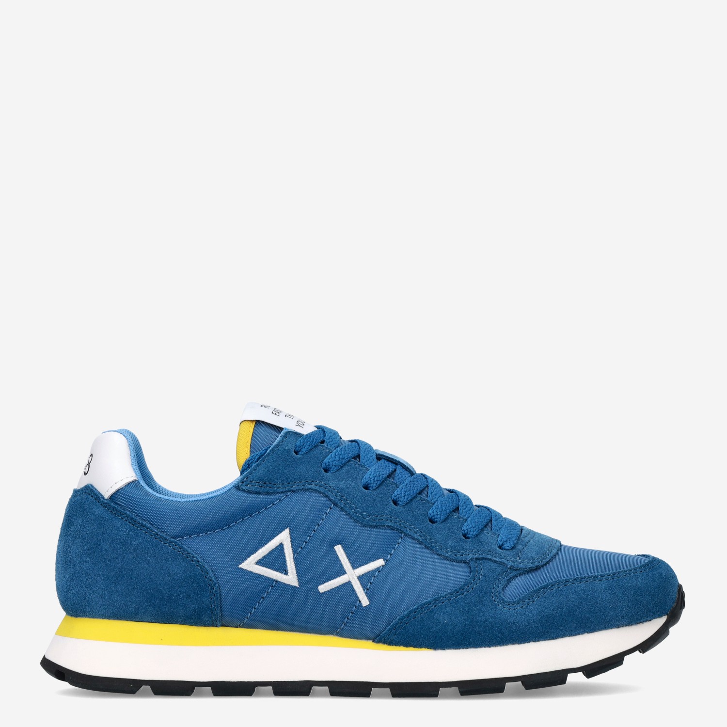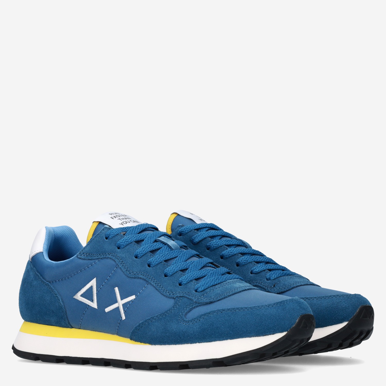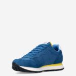 Deze donker blauwe Avio Scuro herensneaker van Sun68 is gemaakt van textiel in combinatie met suède. De sneaker is voorzien van een vetersluiting (plus extra paar veters) en heeft een uitneembaar voetbed. Combineer deze sneaker met gele accenten onder een pantalon of cargo.