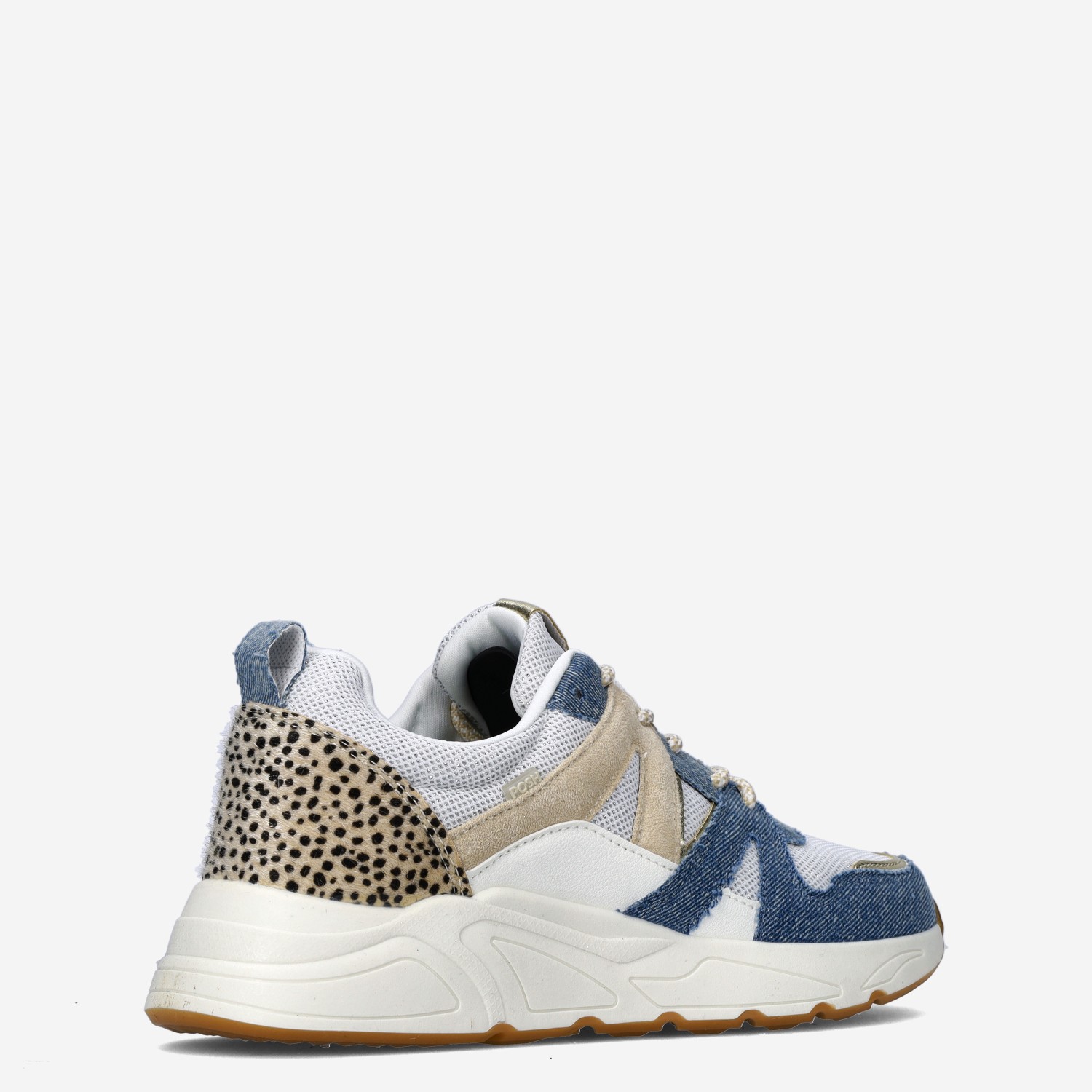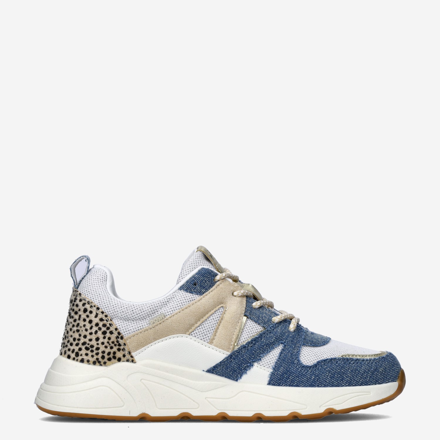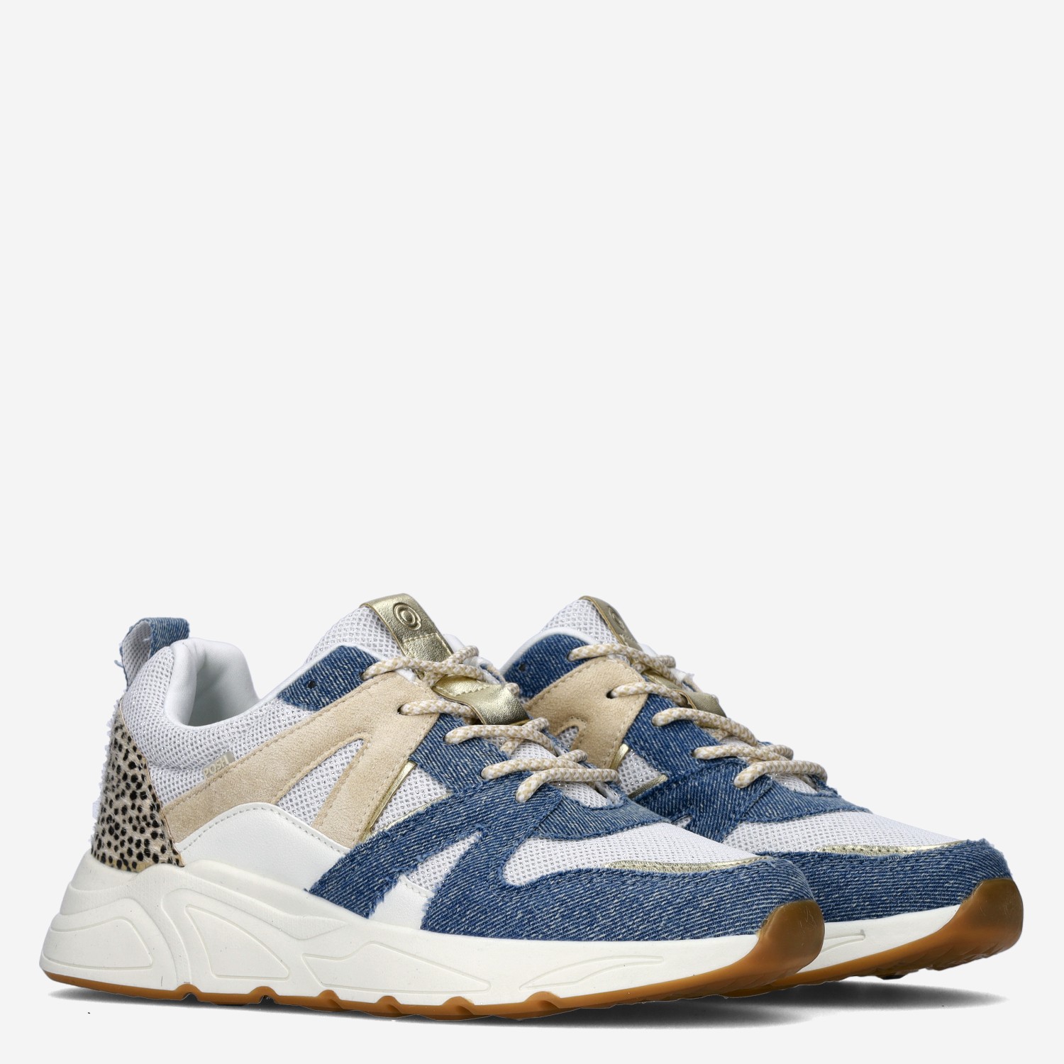 Deze beige, blauwe Carocel Denim damessneaker van Posh is gemaakt van imitatieleer in combinatie met textiel. De sneaker is voorzien van verschillende overlays, denimaccenten en prints. Combineer deze toffe sneaker met een pantalon.