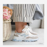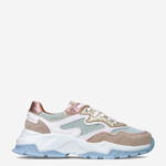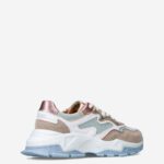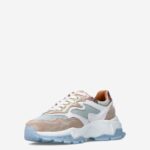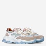 Deze wit, beige met blauwe Chester damessneaker van DWRS is gemaakt van leer in combinatie met textiel. De sportieve ‘dad’ sneaker heeft een dikke rubberen zool en verschillende gekleurde overlays met metallic accenten. Combineer deze sneaker onder jouw favoriete outfit!