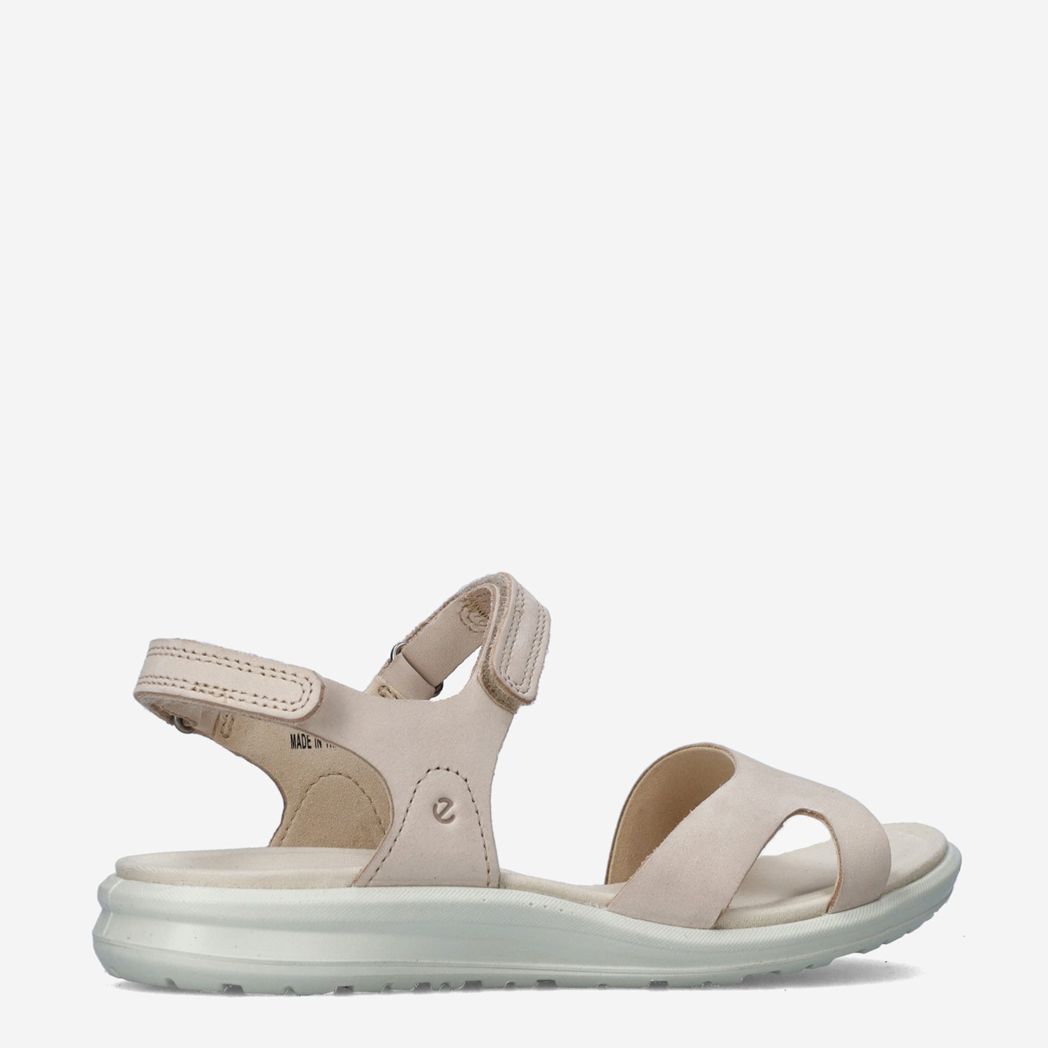 Deze beige Cruise II damessandaal van ECCO is gemaakt van leer en is voorzien van verschillende klittenbandsluitingen.