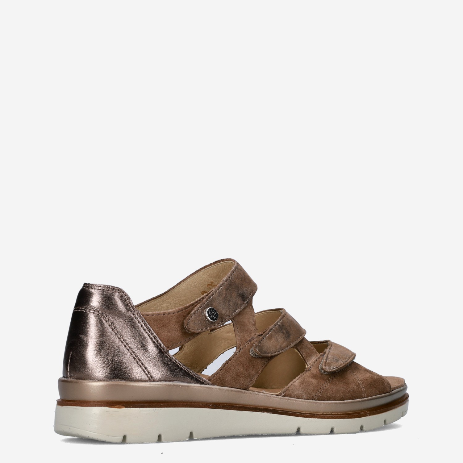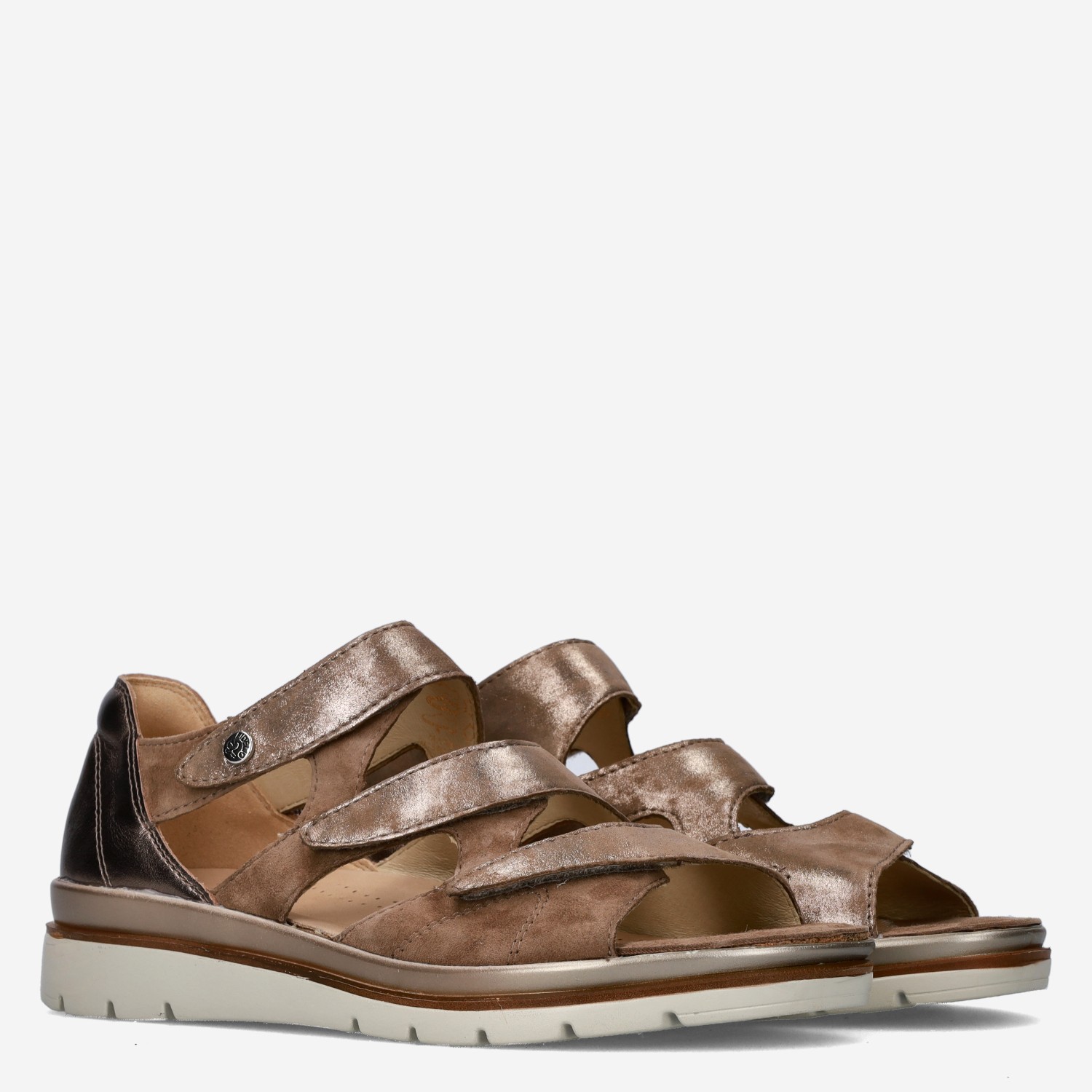 Deze gouden damessandalen van Fidelio zijn gemaakt van leer.