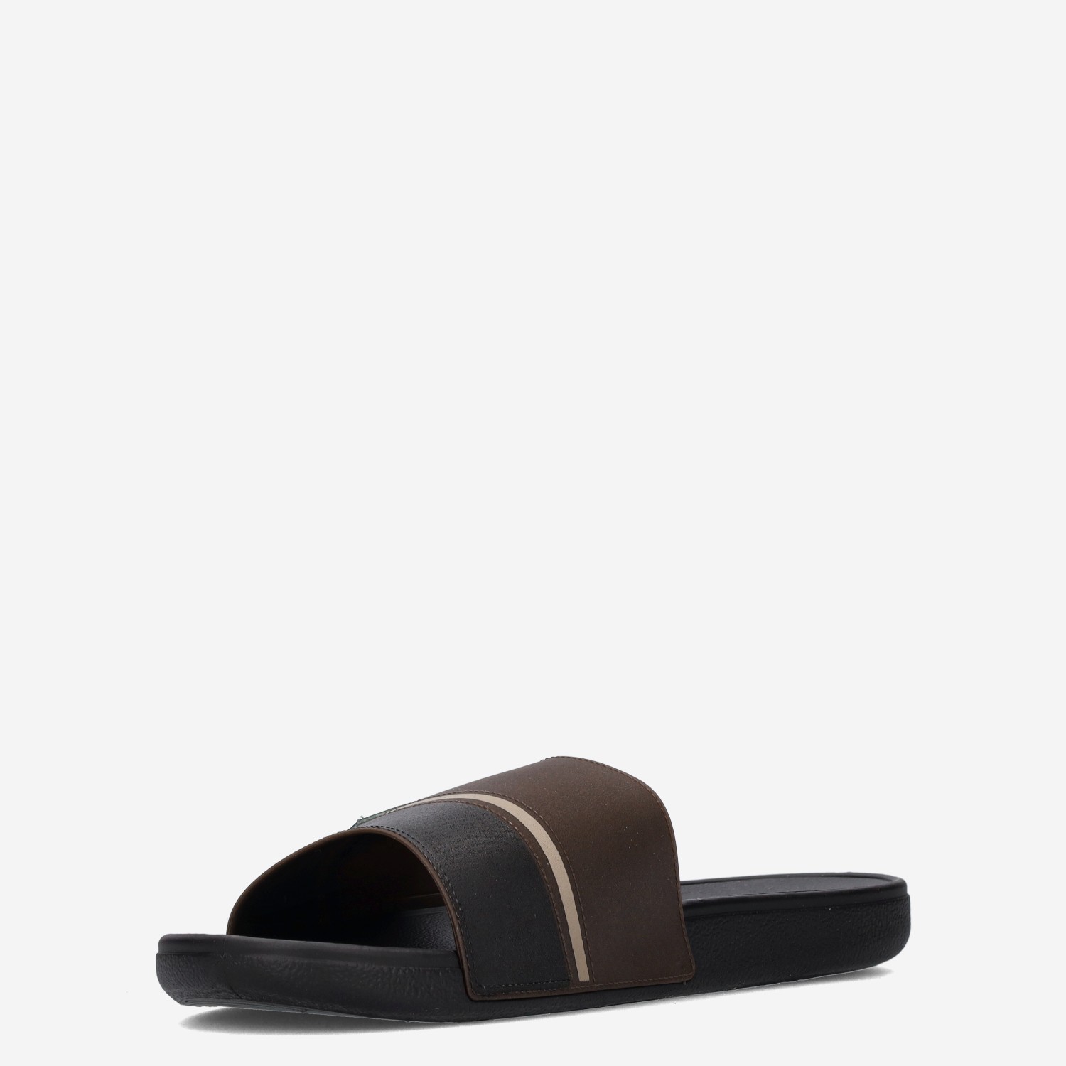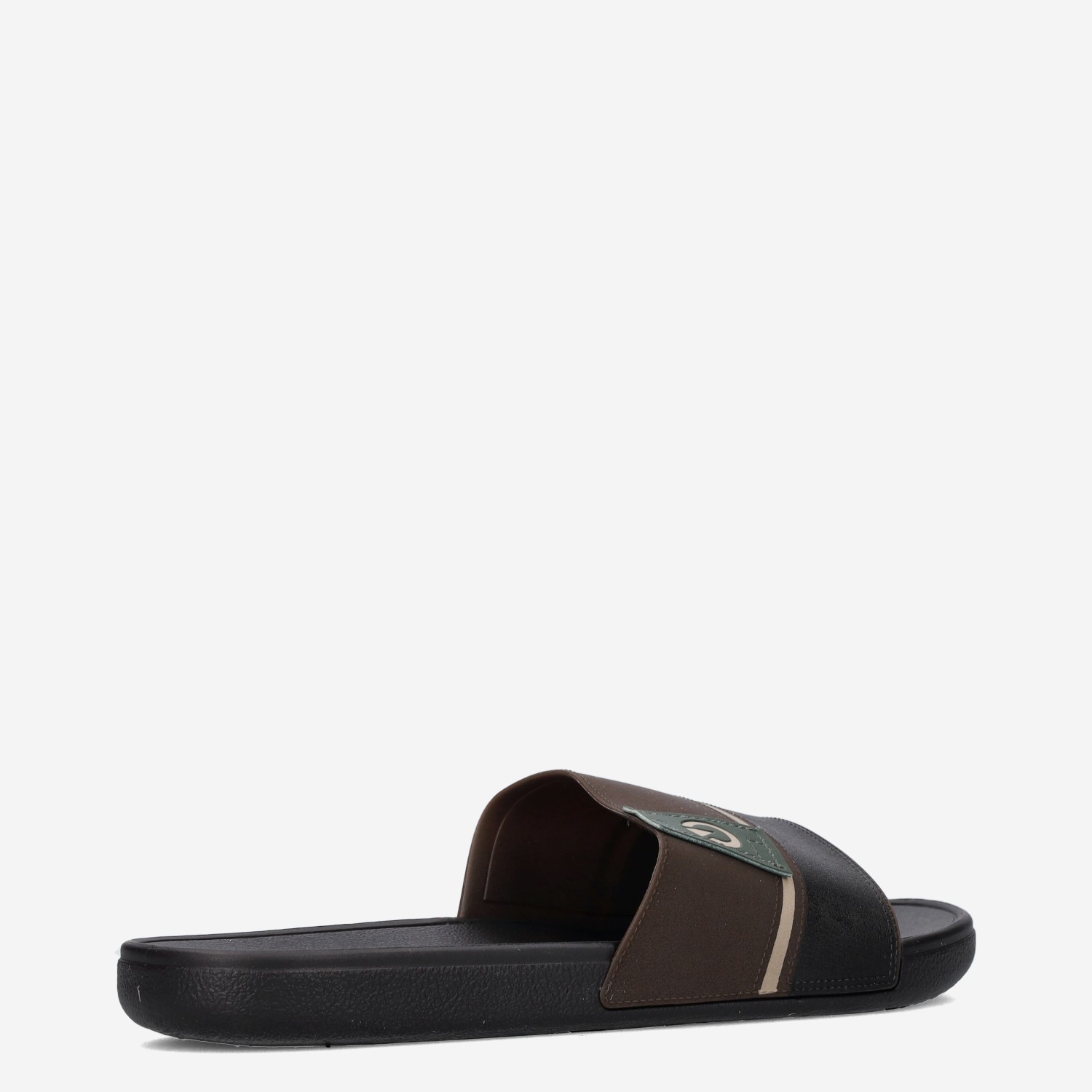 Deze bruine Cartago Dakar Slide herenslipper is gemaakt van synthetische materialen in combinatie met een flexpand materiaal.