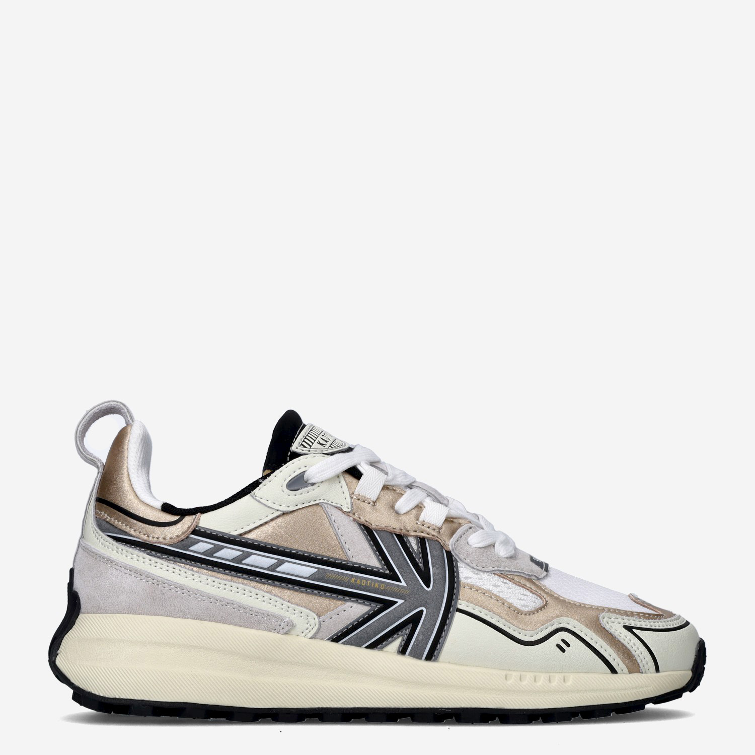 Deze witte multicoloured Detroit damessneaker van Kaotiko is gemaakt van leer in combinatie met textiel. De sneaker is voorzien van een uitneembaar voetbed, een vetersluiting en heeft toffe zilveren en gouden accenten. Combineer deze sneaker onder elke outfit!