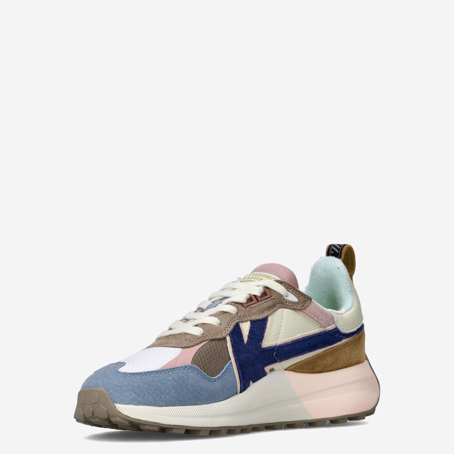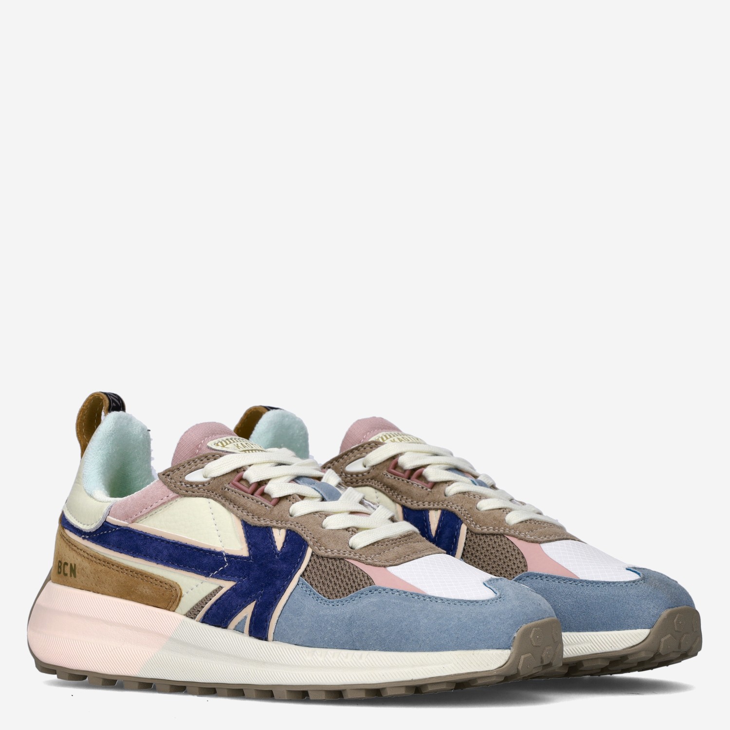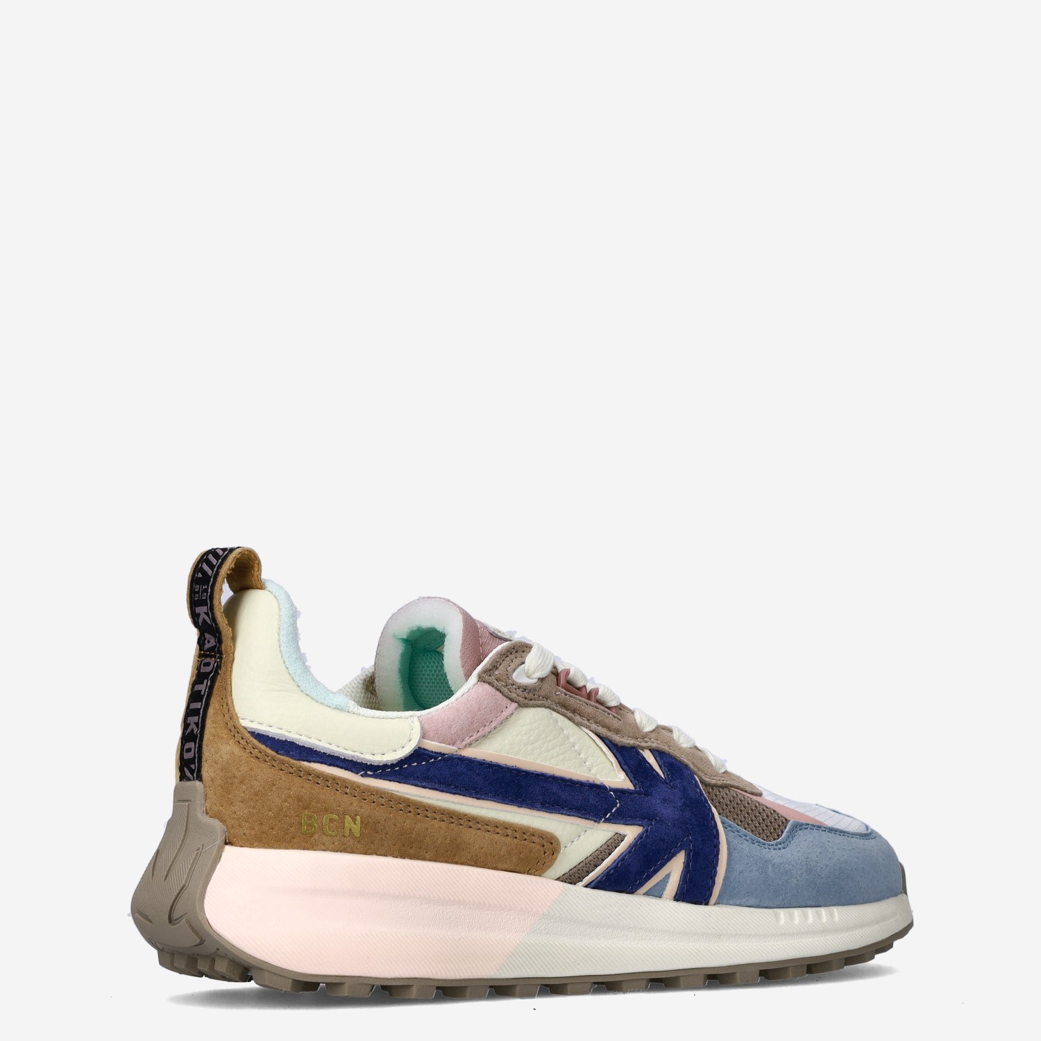 Deze blauwe multicoloured Detroit damessneaker van Kaotiko is gemaakt van leer in combinatie met textiel. De sneaker is voorzien van een vetersluiting en heeft een uitneembaar voetbed. Deze sneaker kun je goed combineren onder een jeans.