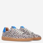 Deze met panterprint beklede DWRS Poona damessneaker is gemaakt van leer in combinatie met suède. De sneaker heeft een lage loopzool en de panterprint met blauwe accenten geeft deze sneaker een trendy look! Combineer de sneaker met een jeans of pantalon.