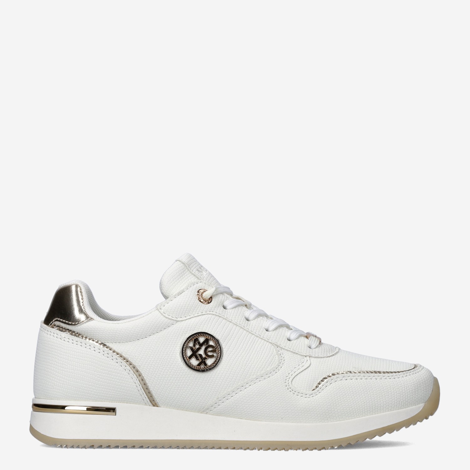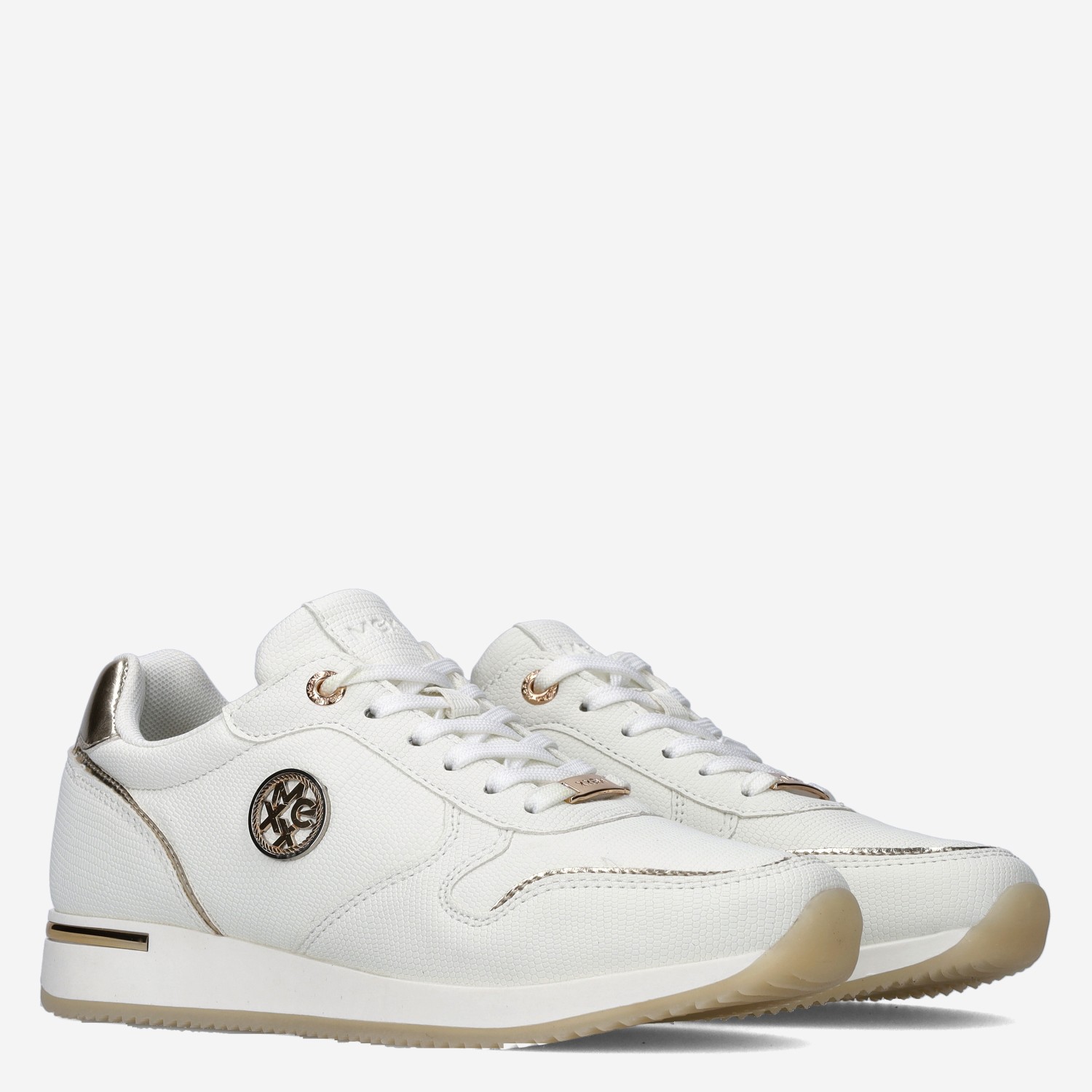 Deze offwhite Eke Caia damessneaker van Mexx is gemaakt van imitatieleer in combinatie met textiel. De sneaker heeft verschillende gouden accenten en overal print-look. Combineer deze sneaker onder jouw favoriete outfit!