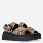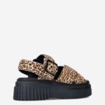 Deze bruin met zwarte Evamar Wish damessandaal is gemaakt van leer in combinatie met imitatie ponyhair. De sandaal is voorzien van een gespsluiting en heeft een toffe panterprint. Combineer deze sandaal met een lange rok of jeans.