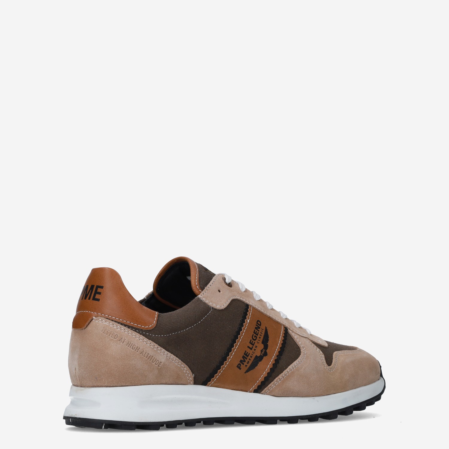 Deze bruin/beige Flighttube herensneaker van PME Legend is gemaakt van suède in combinatie met andere leersoorten. Combineer deze mooie sneaker met een pantalon of jeans.