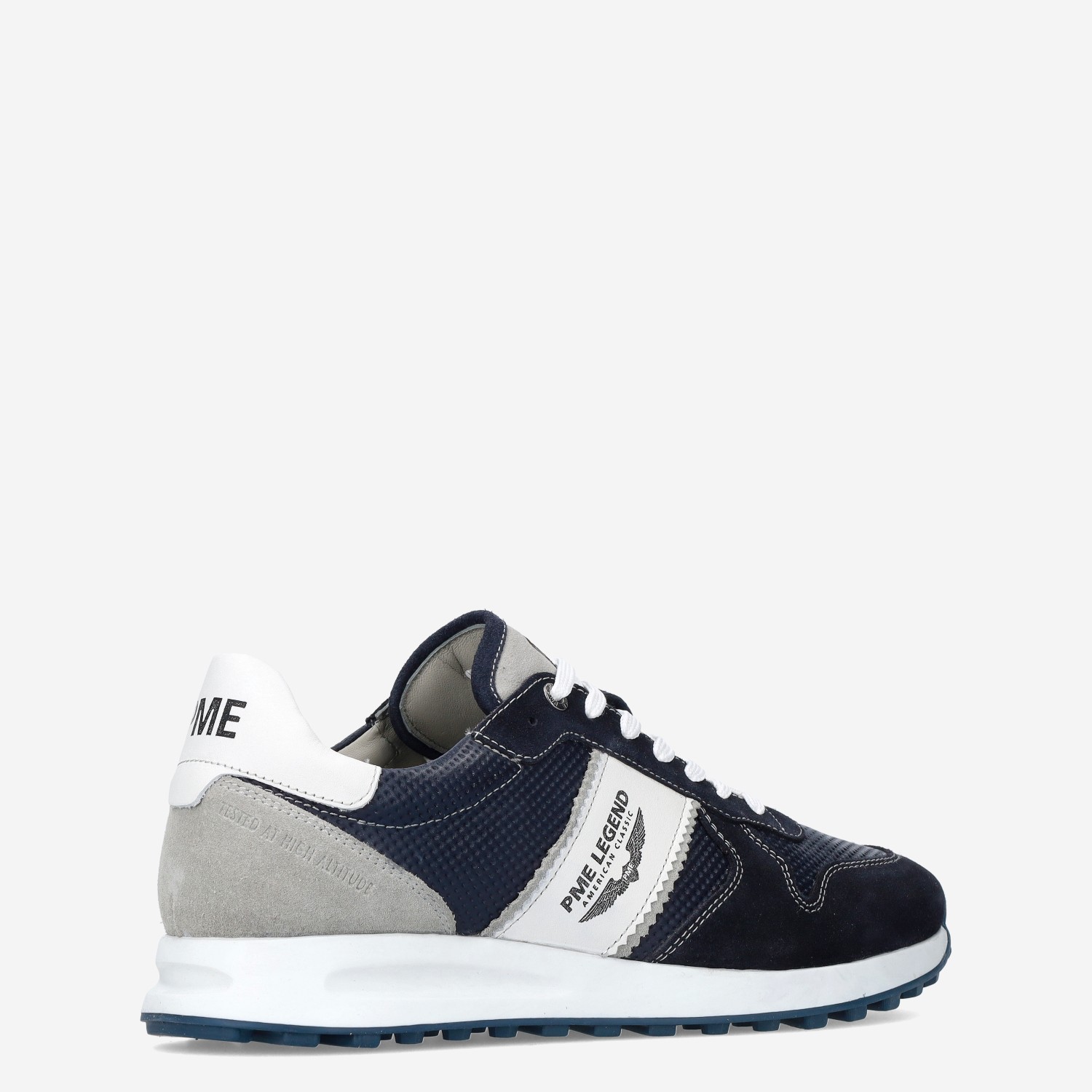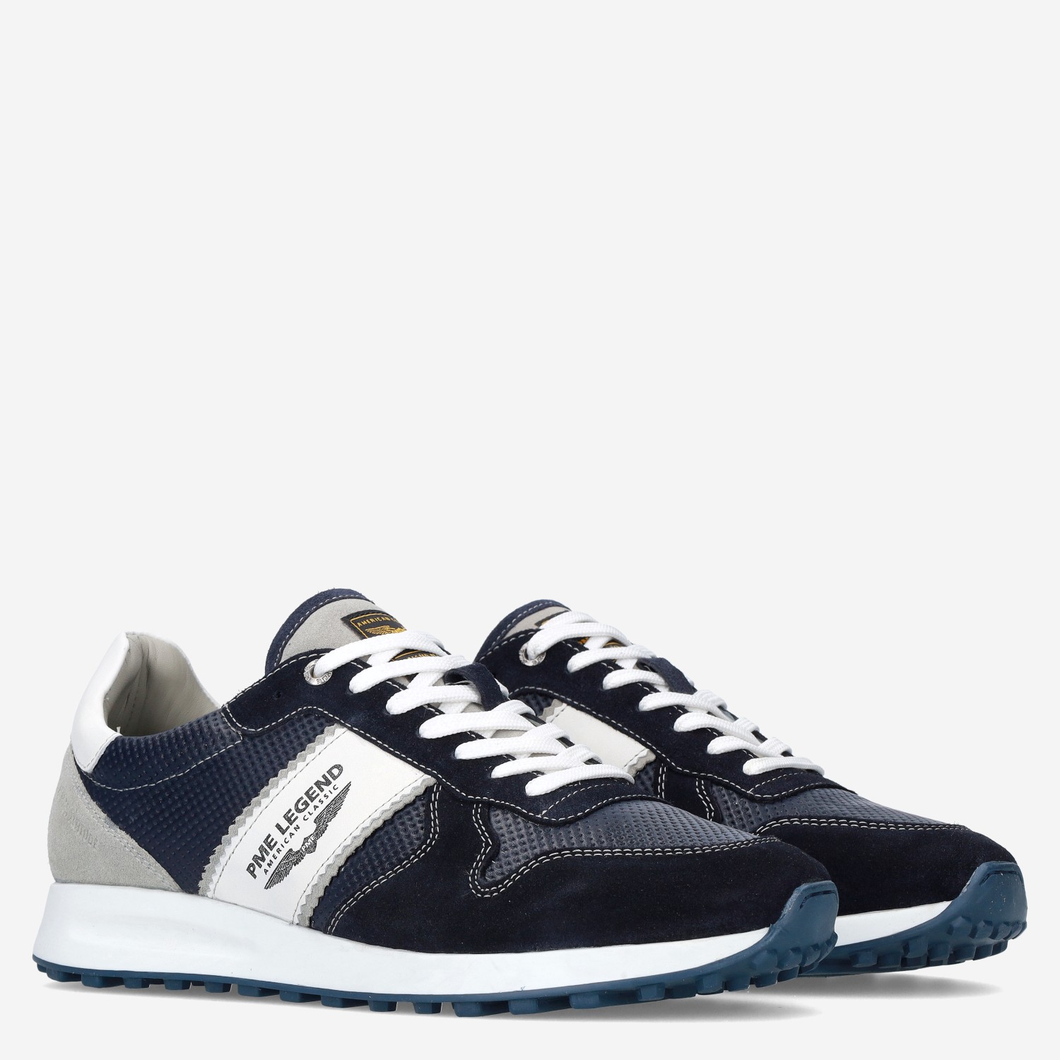 Deze blauw met grijs/witte PME Legend Flightube herensneaker is gemaakt van verschillende leersoorten waaronder suède en geperforeerd leer. De sneaker heeft een voorgevormd voetbed en een casual look. Combineer deze sneaker met een jeans of cargo.