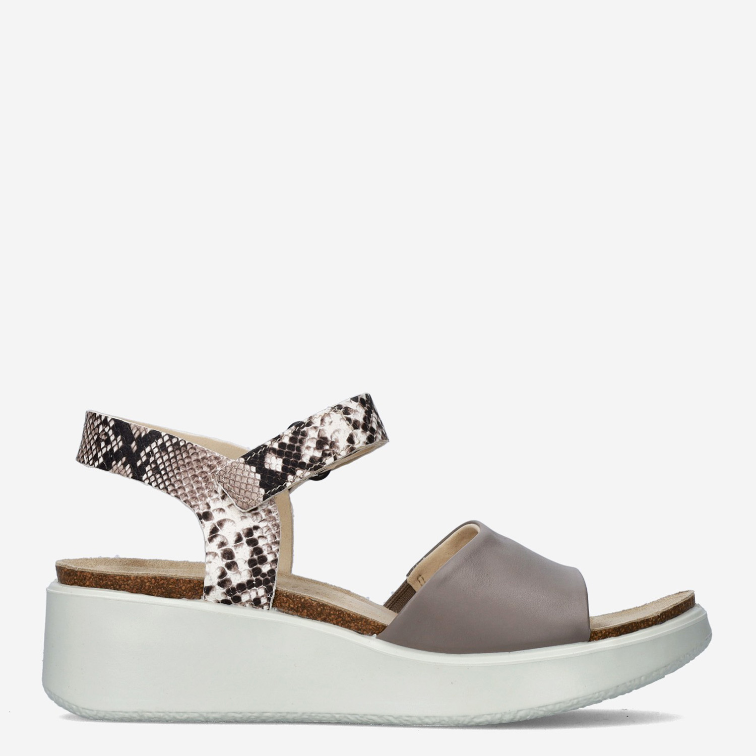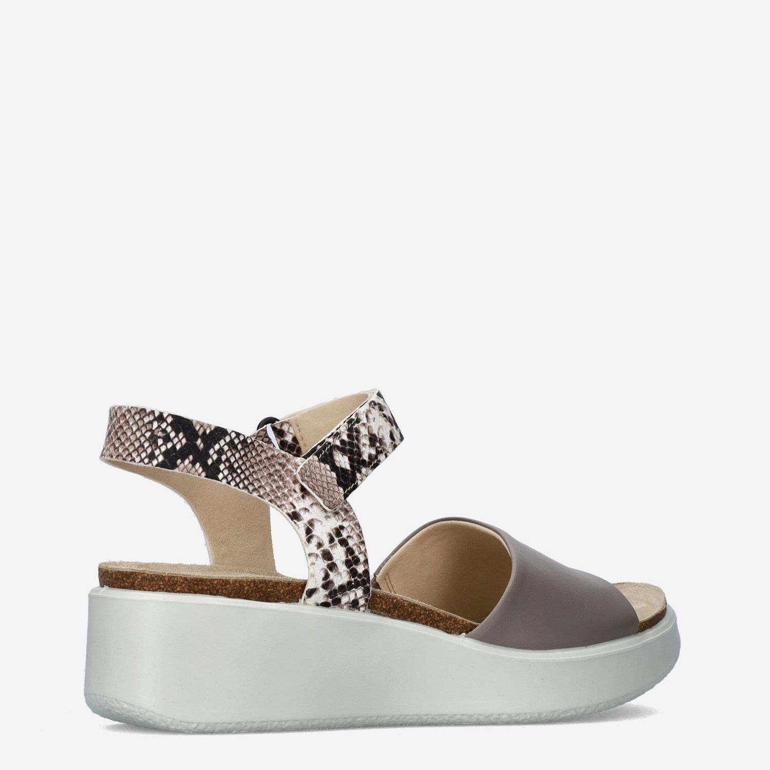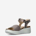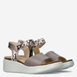 Deze bruin met slangenprint gedecoreerde Flowt damessandaal van ECCO is gemaakt van leer en heeft een klittenbandsluiting.