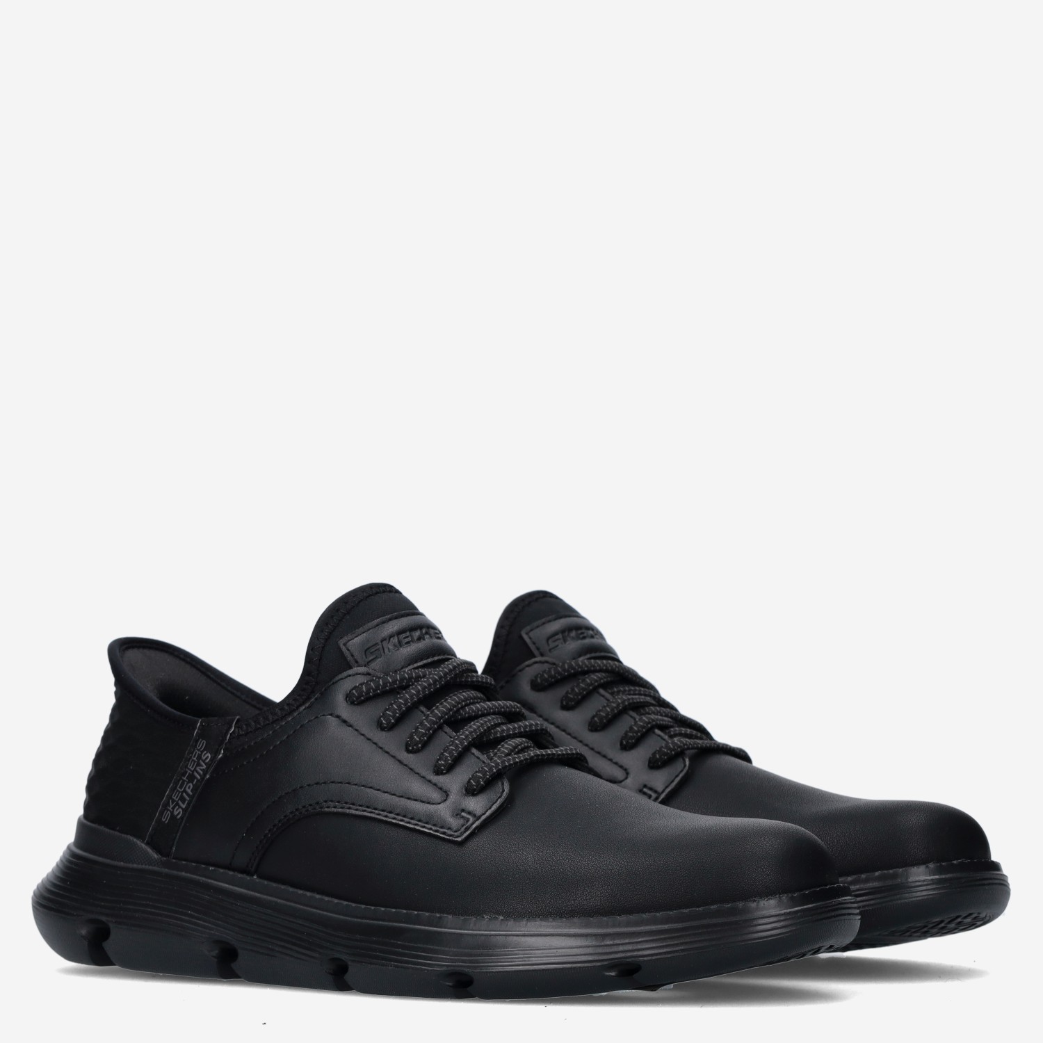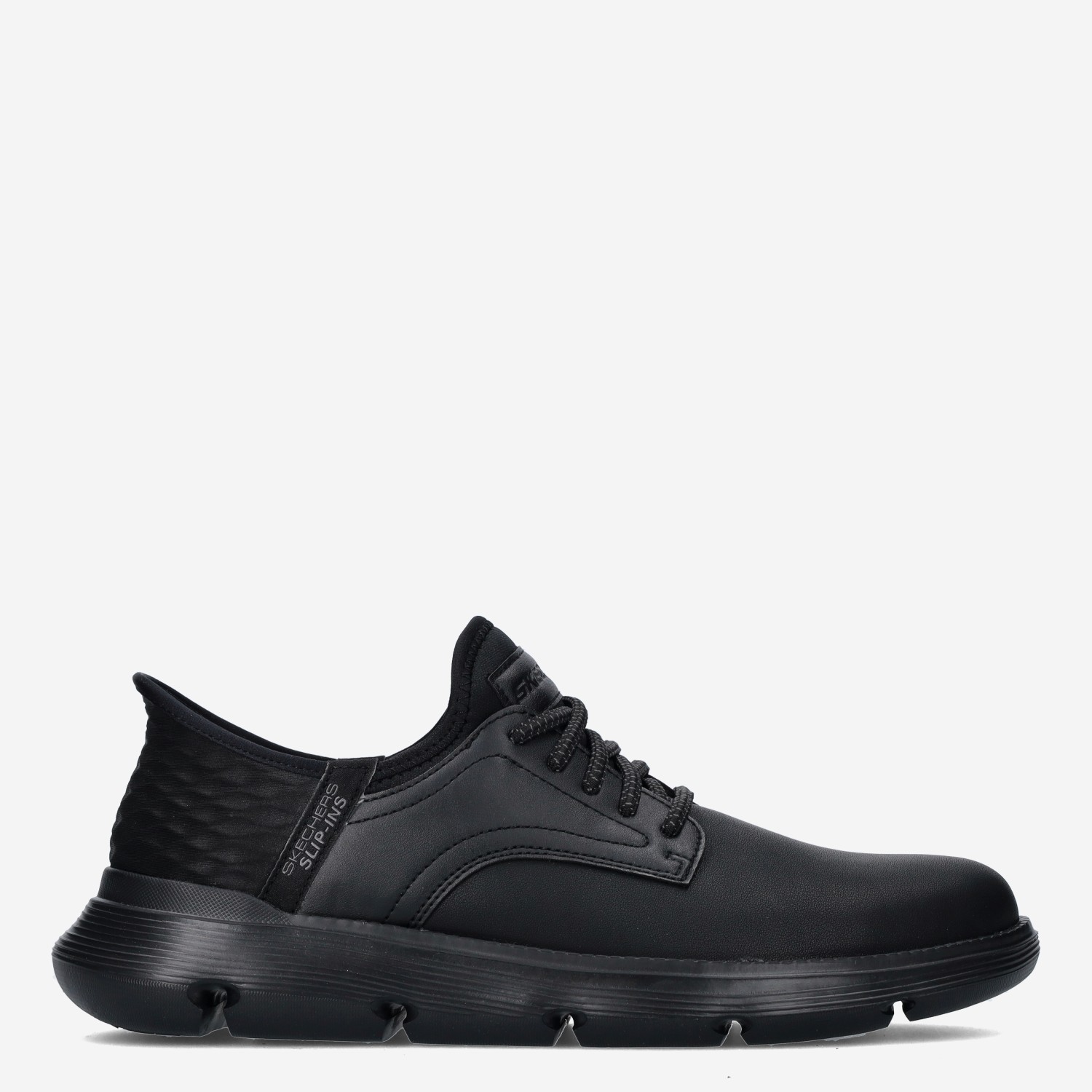 Deze zwarte Garza Gervin herenschoen van Skechers is gemaakt van imitatie leer in combinatie met textiel. De schoen is voorzien van een stevig voetbed die tevens zorgt voor een optimale demping en comfort. De veters zijn decoratief. Combineer deze instapper met een pantalon.