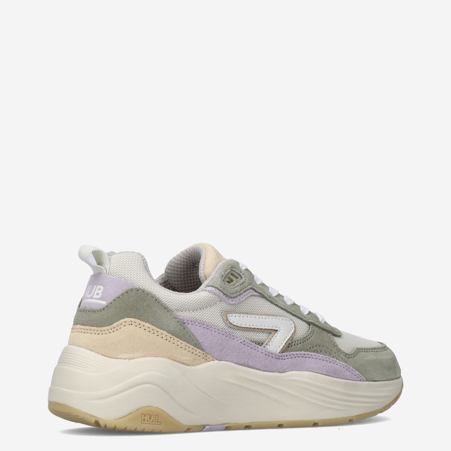 Deze soft groene multicoloured HUB Glide S43 damessneaker is gemaakt van suède in combinatie met mesh. Deze sportieve sneaker met pastel gekleurde accenten kun je goed combineren onder een jeans!