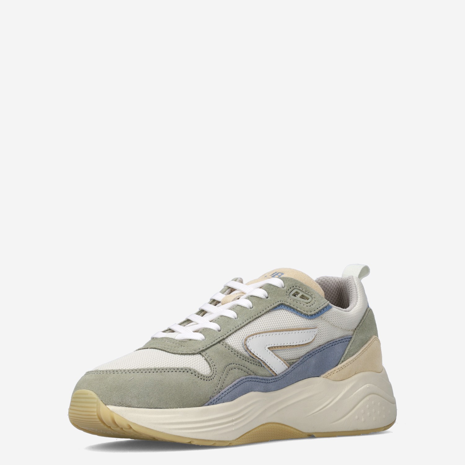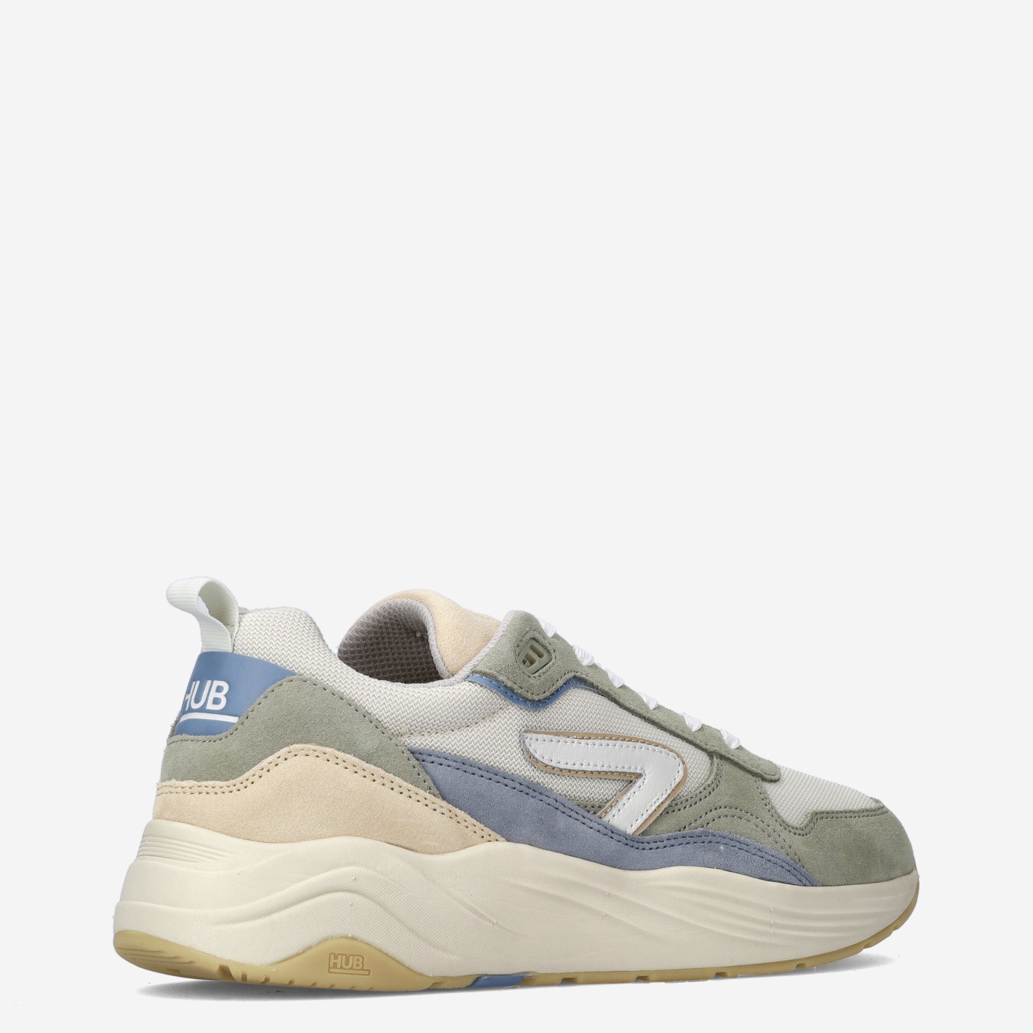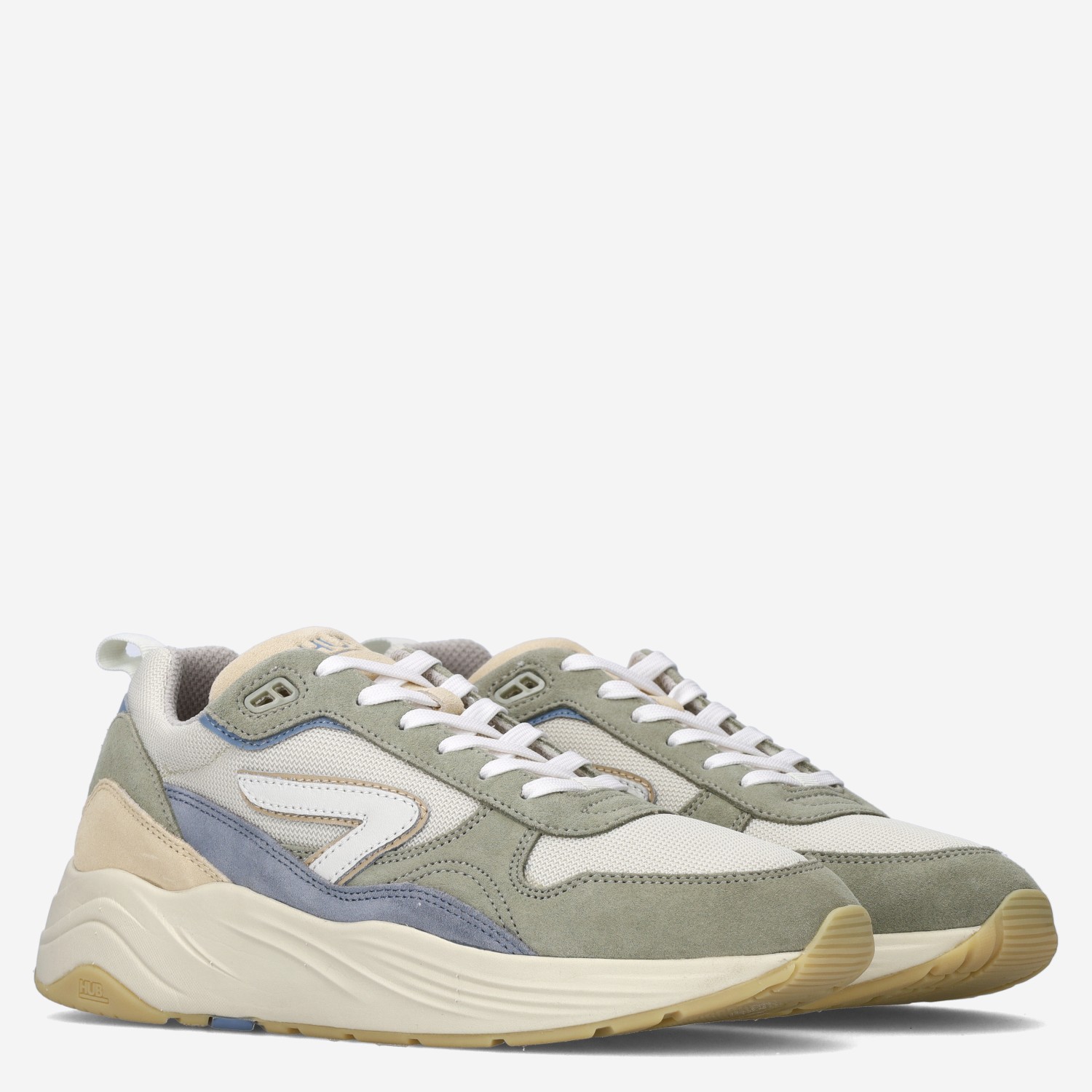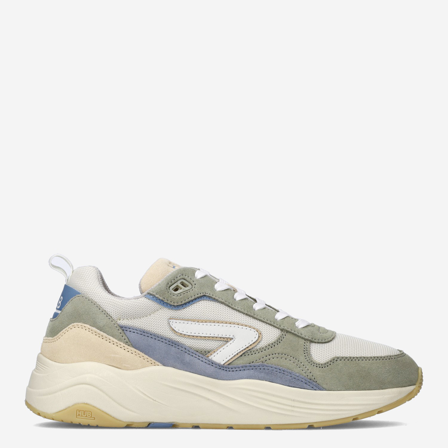 Deze groen met gele multicoloured HUB Glide S43 herensneaker is gemaakt van suède in combinatie met mesh. Deze sportieve chunky sneaker kun je goed combineren onder een jeans!