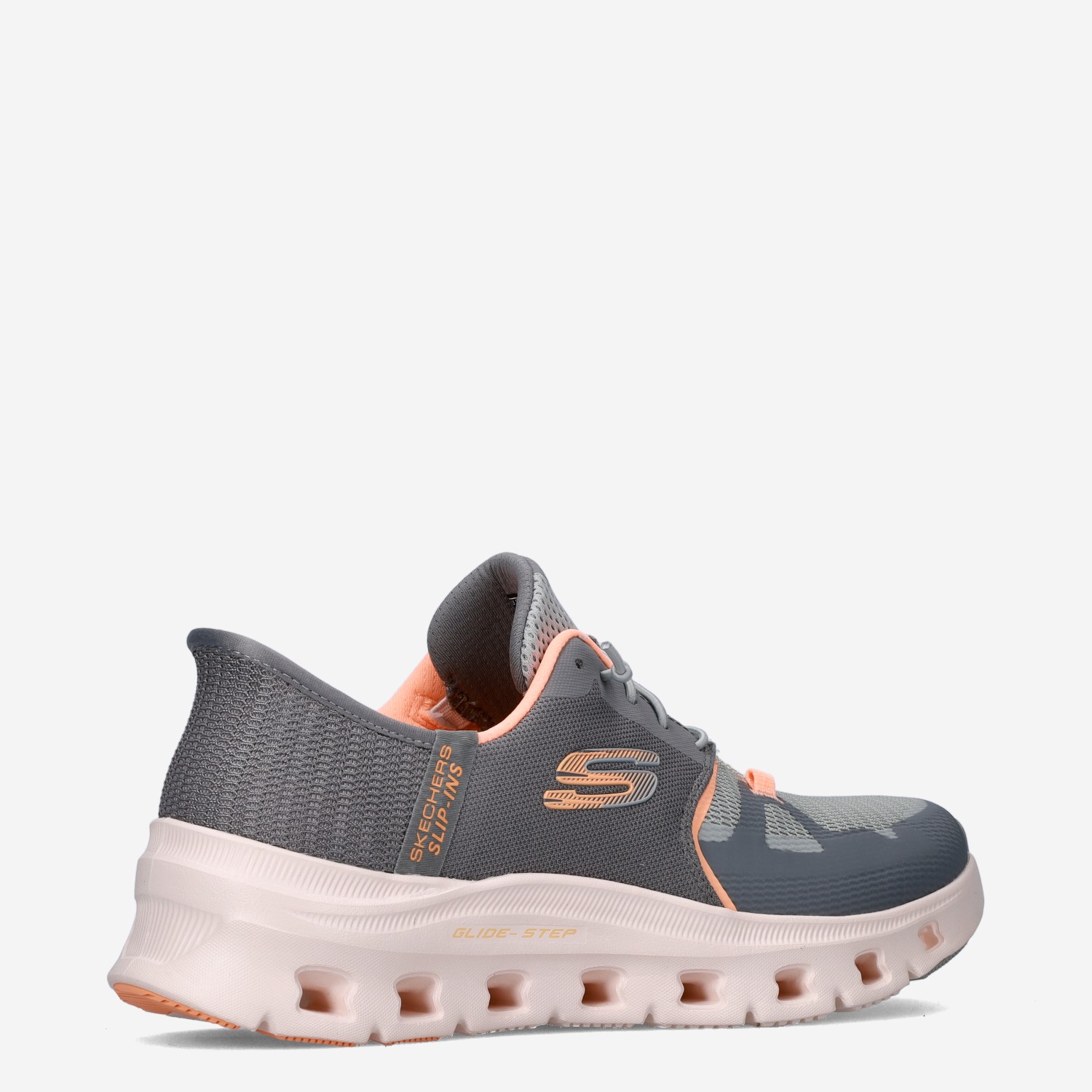 Deze grijs met oranje Glide-Step Pro Hotmelt damesschoen van Skechers is gemaakt van mesh in combinatie met textiel en synthetische materialen. De schoen is voorzien van een gemakkelijke instap en trekkoorden. Combineer deze instapper met een jeans.