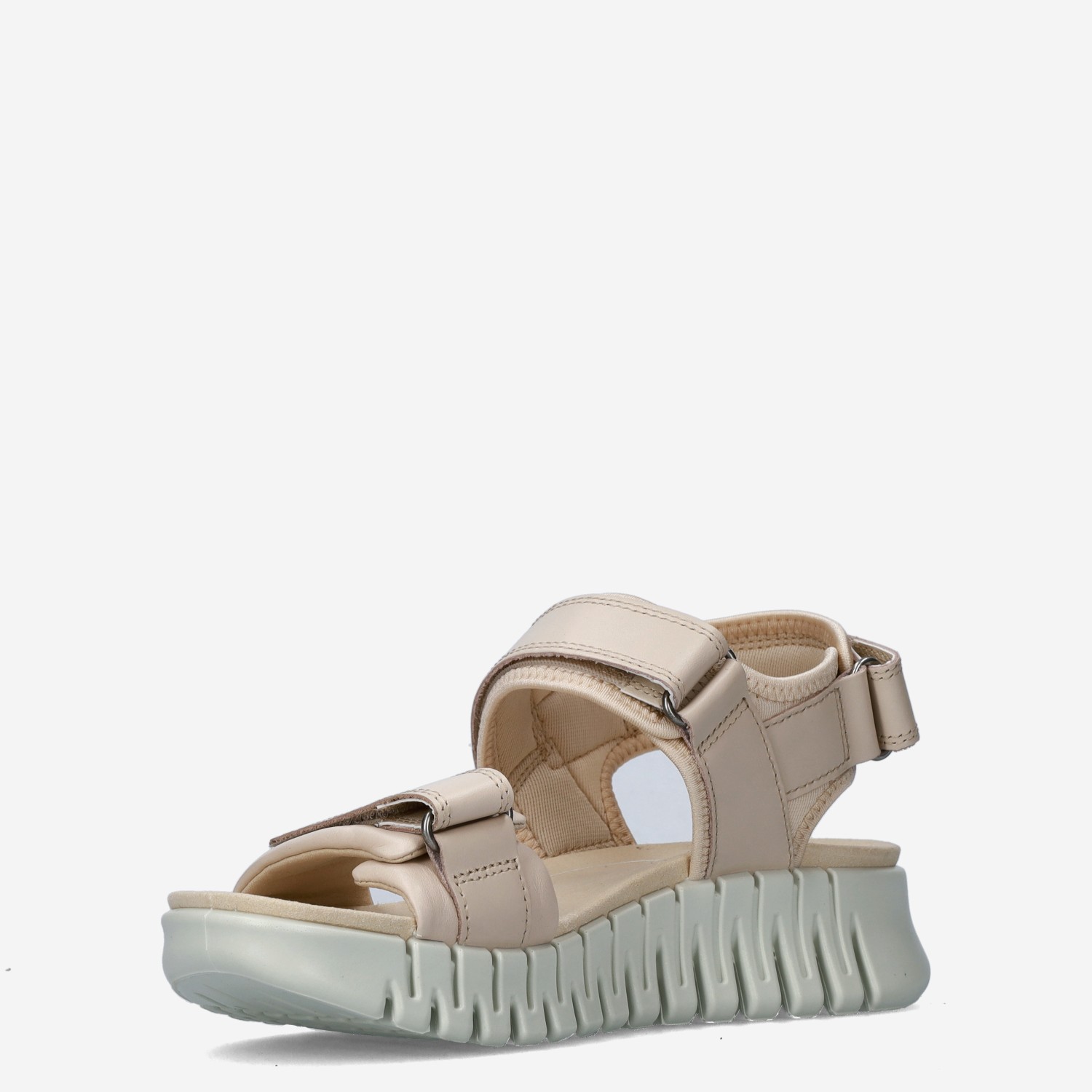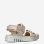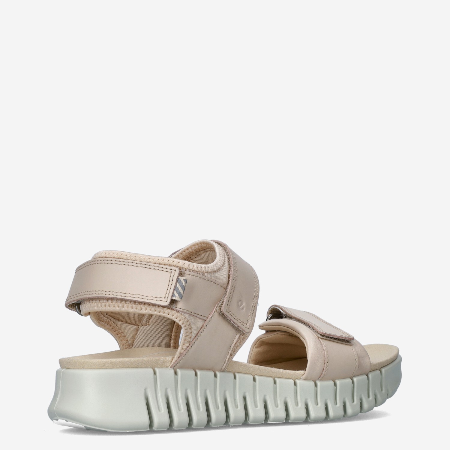 Deze beige Gruuv damessandaal van ECCO is gemaakt van hoogwaardig leer. Het voetbed is gemaakt van comfort foam. De opvallende zool zorgt voor een sportieve uitstraling en kent de two-way flex technologie, waarbij de zool met je mee beweegt. Combineer deze sandaal met een jurk!
