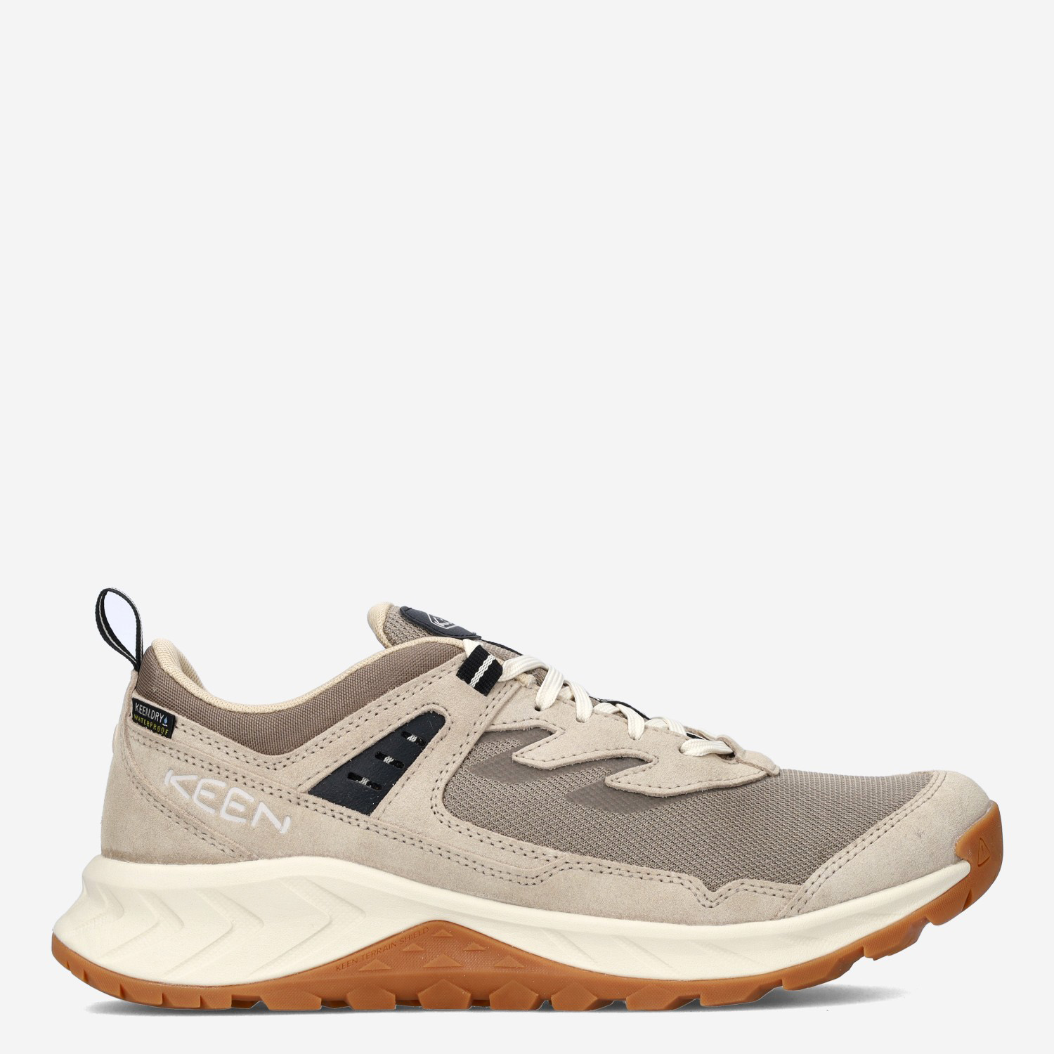 Deze beige Hightrail herensneaker van Keen is gemaakt van suède in combinatie met hoogwaardig waterdicht mesh. Deze wandelsneaker met oranje accenten is voorzien van een EVA zool voor extra demping en comfort. Combineer deze sportieve wandelsneaker met een cargobroek of sportbroek.