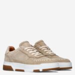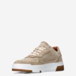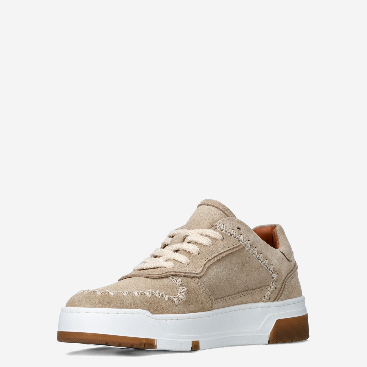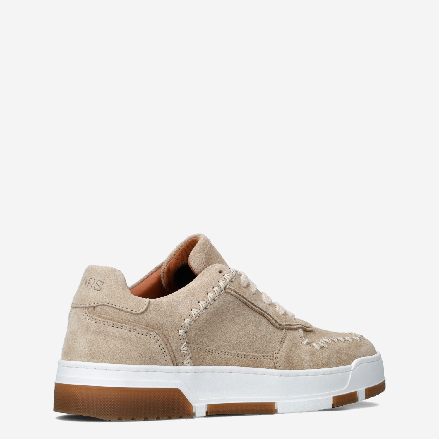 Deze beige/bruine Huntly damessneaker van DWRS is gemaakt van suède in combinatie met textiel. De sneaker is voorzien van verschillende stiknaden voor een speelse look en heeft een teddystoffen vetersluiting. Combineer deze comfortabele sneaker onder een jeans!