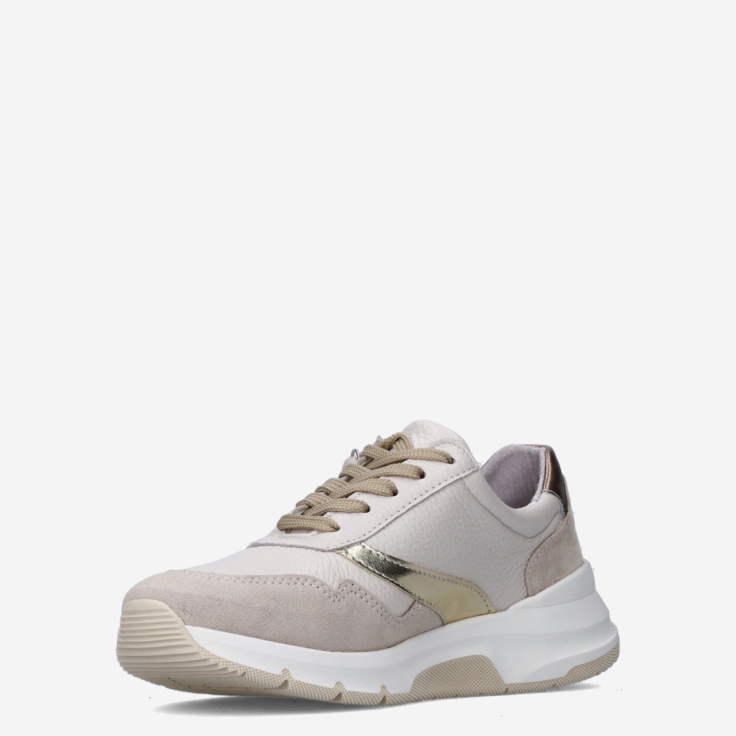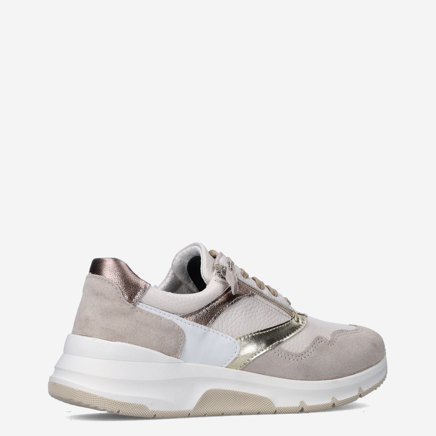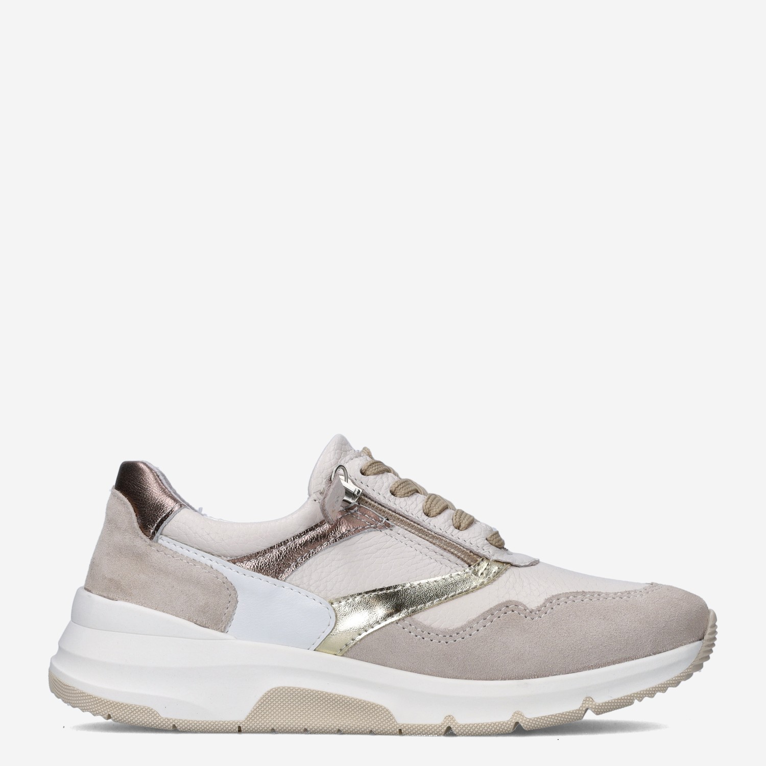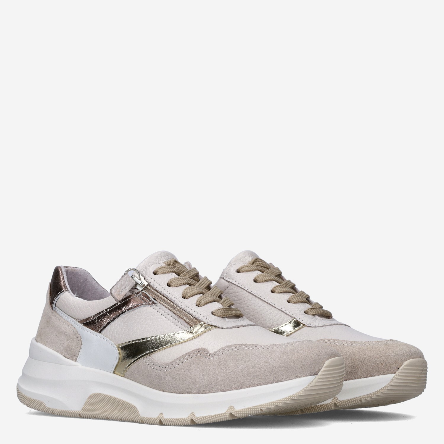 Deze beige Jasmin damessneaker van Aco is gemaakt van leer in combinatie met imitatieleer. De sneaker is voorzien van zowel een rits- als vetersluiting voor een gemakkelijke instap. Combineer deze sneaker met een jeans of pantalon.