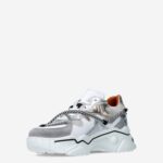 Deze witte multicoloured Jupiter damessneaker van DWRS is gemaakt van leer en heeft verschillende toffe overlays van denim en metallic/zilveren accenten. De chunky witte zool maakt dit een sportieve trendy sneaker! Combineer deze sneaker met een jeans of pantalon.