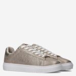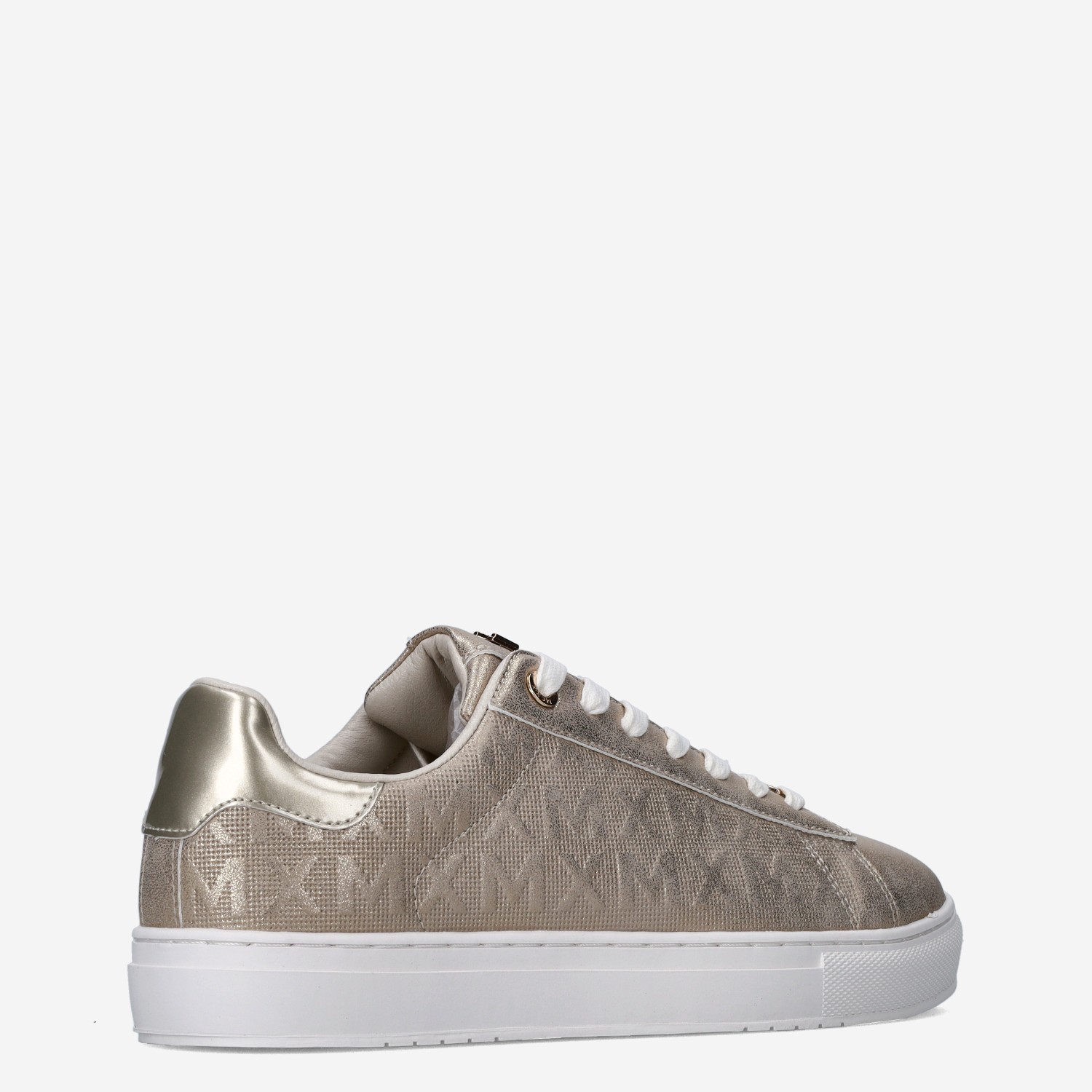 Deze gouden damessneaker van Mexx is gemaakt van imitatie leer.