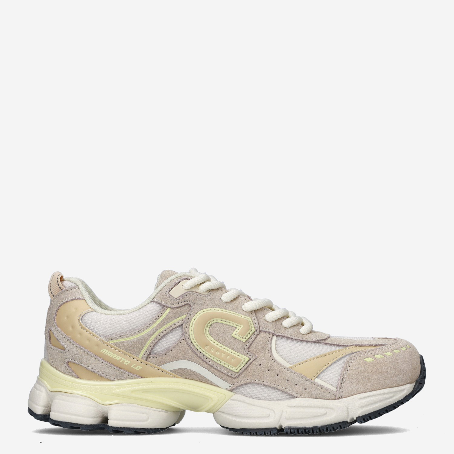 Deze beige/gele Marato Runner damessneaker van Cruyff is gemaakt van suède in combinatie met mesh. Combineer deze sportieve sneaker met een jeans of pantalon!