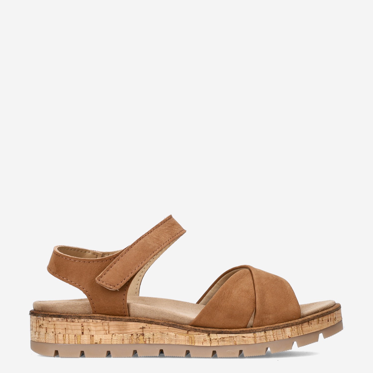 Deze bruine Mia damessandaal is gemaakt van imitatieleer in combinatie met kurk voor de zool. Deze sandaal is voorzien van een klittenbandsluiting en kun je goed combineren onder een jeans of rok!