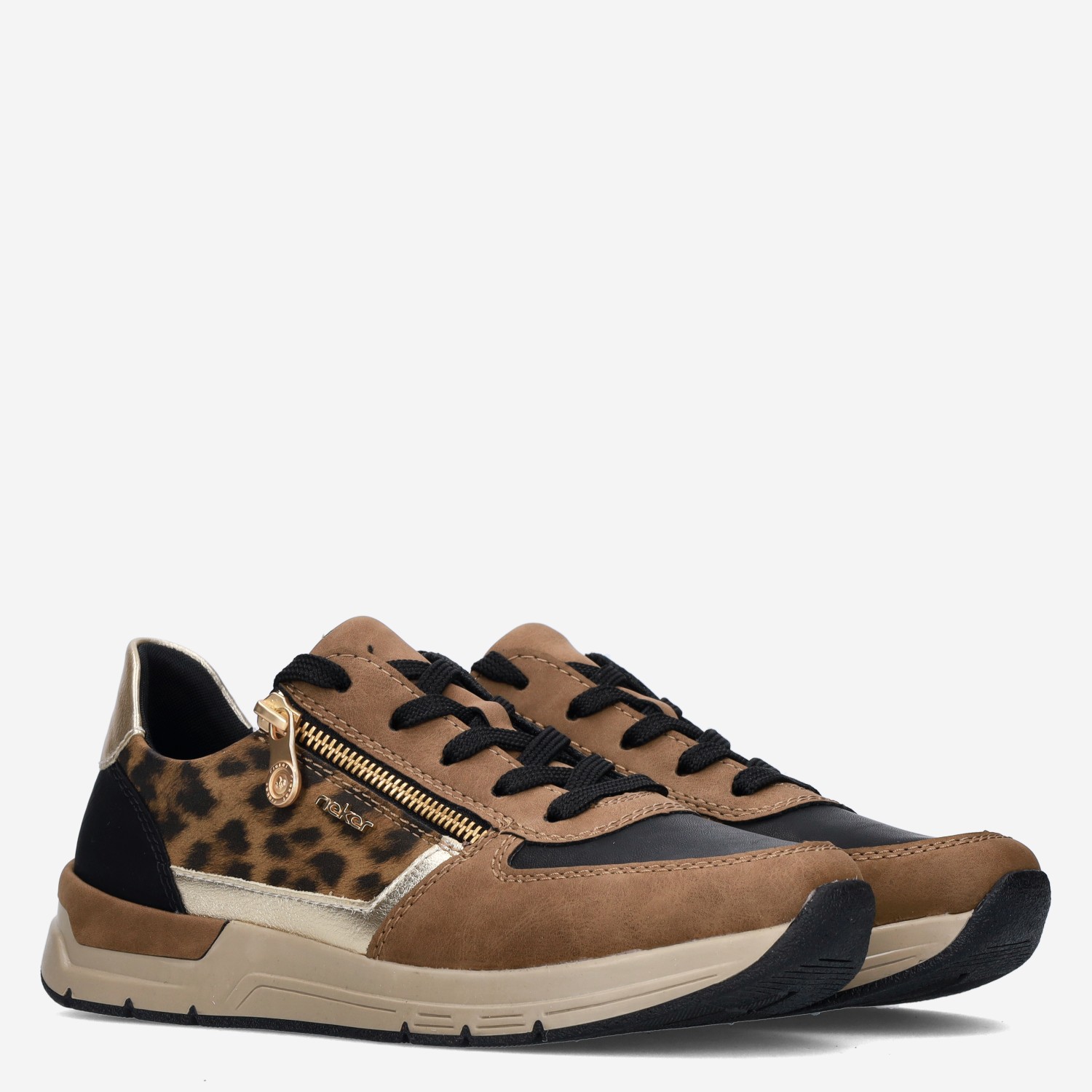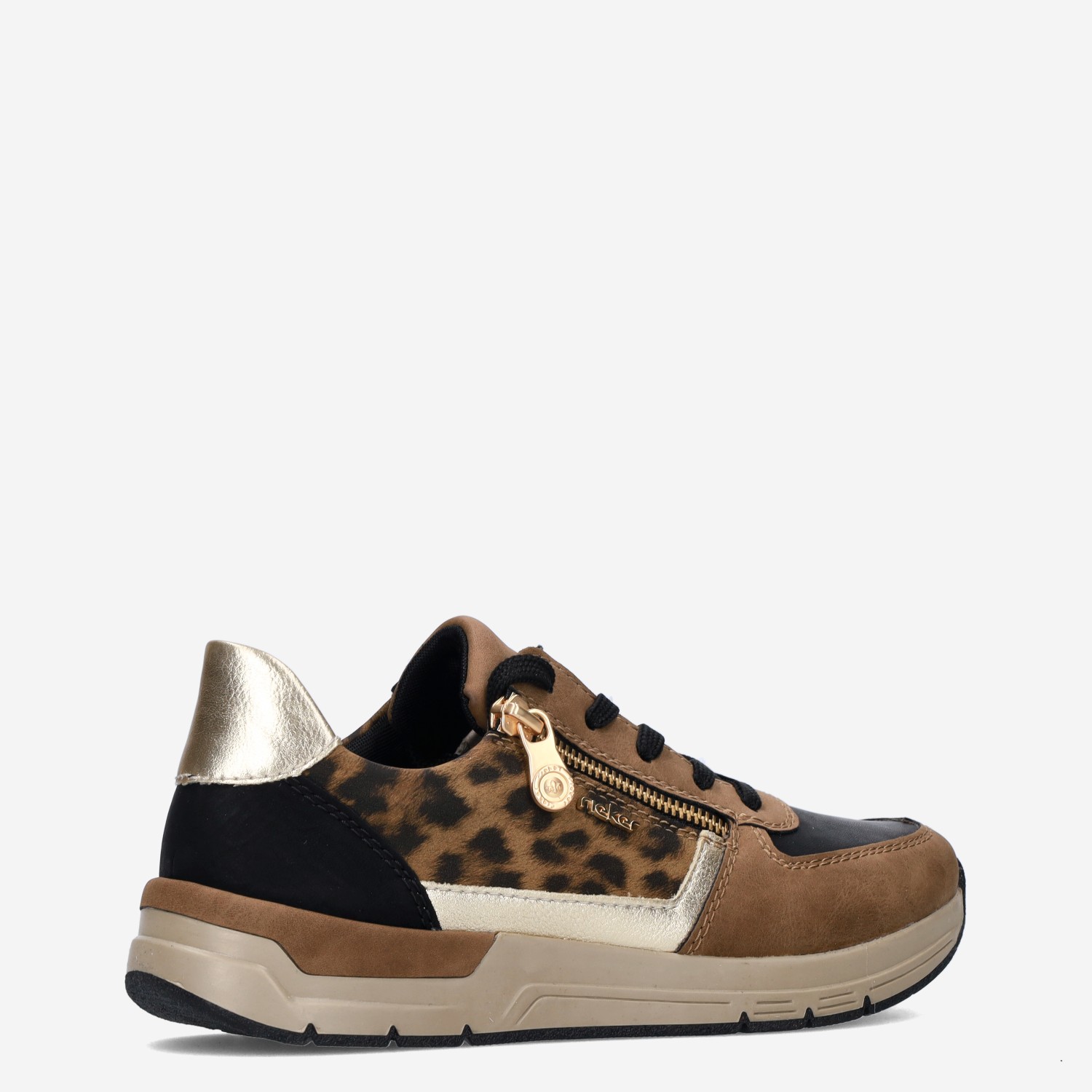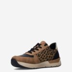 Deze bruine damessneaker van Rieker is gemaakt van leer en textiel.