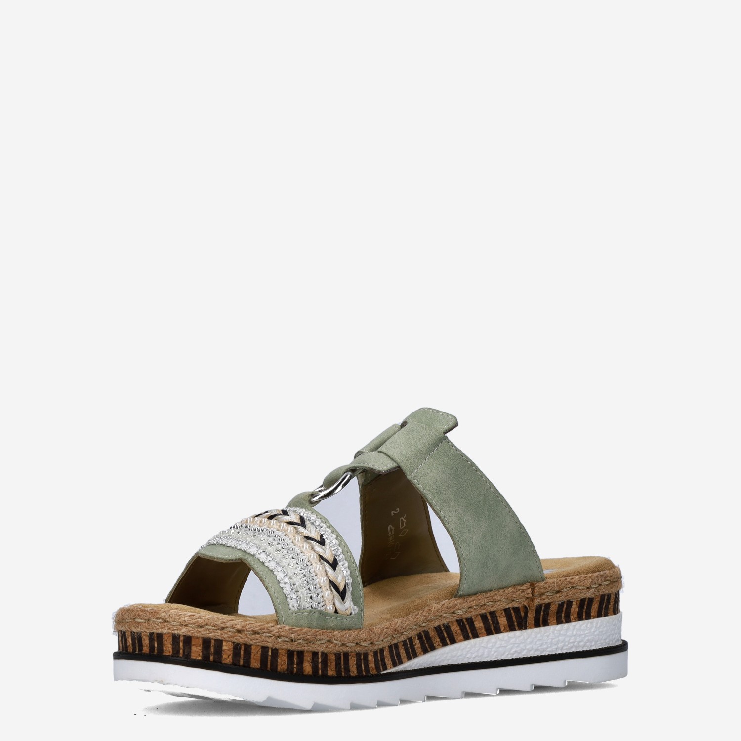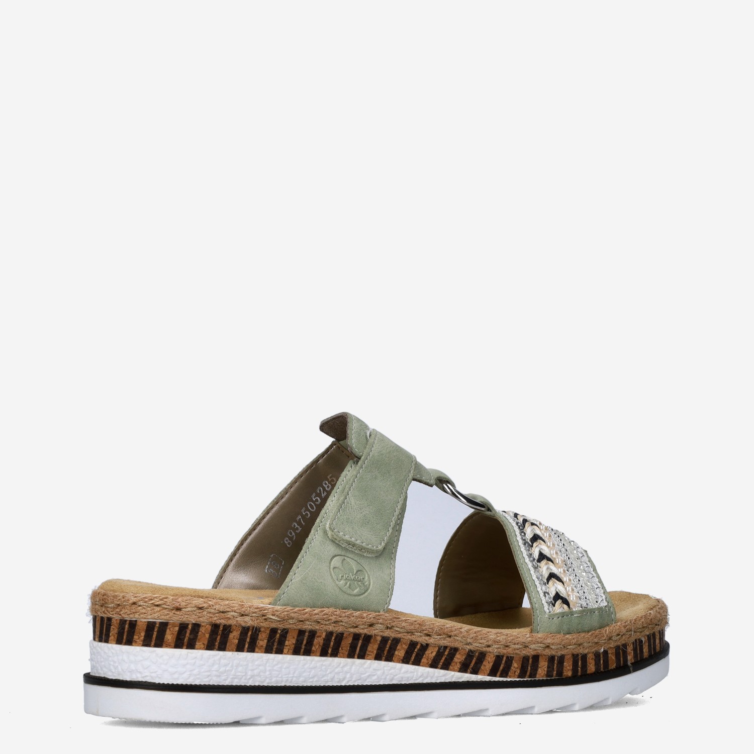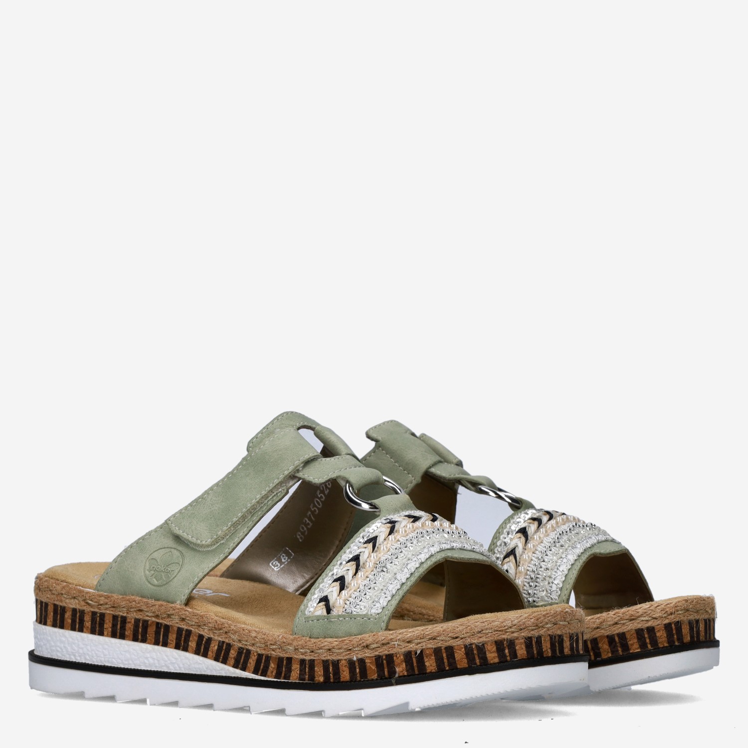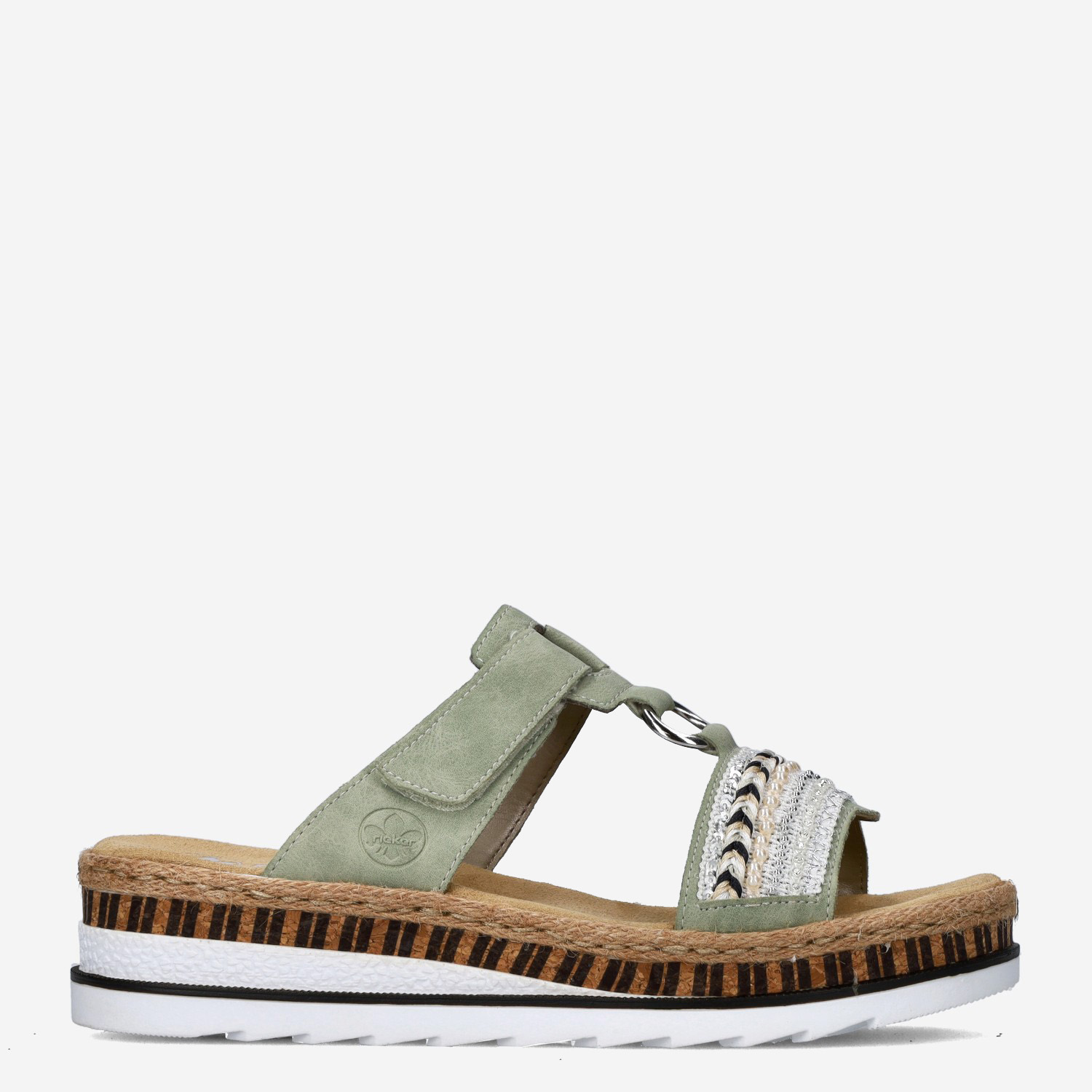 Deze groen gekleurde Morelia damesslipper van Rieker is gemaakt van leer in combinatie met textiel en synthetische materialen. De sandaal is voorzien van een klittenbandsluiting voor een gemakkelijke instap. Combineer deze Ibiza slipper met geborduurd detail onder een jurk of rok.