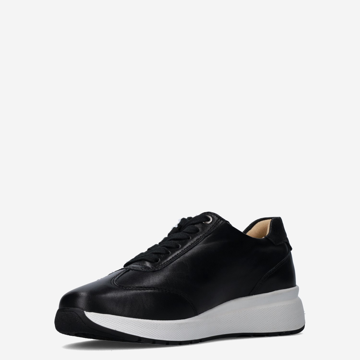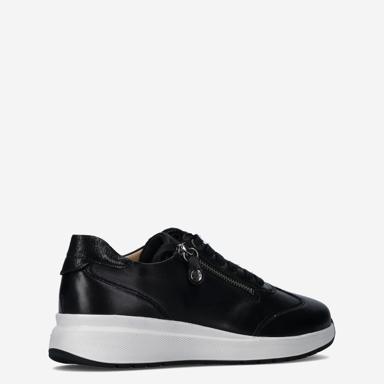 Deze zwarte Multi Str D-Halbschuh damessneaker van Fidelio is gemaakt van leer en is voorzien van zowel een rits- als vetersluiting voor een gemakkelijke instap. Combineer deze tijdloze sneaker met witte zool onder een jeans.
