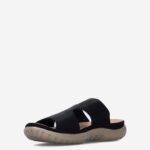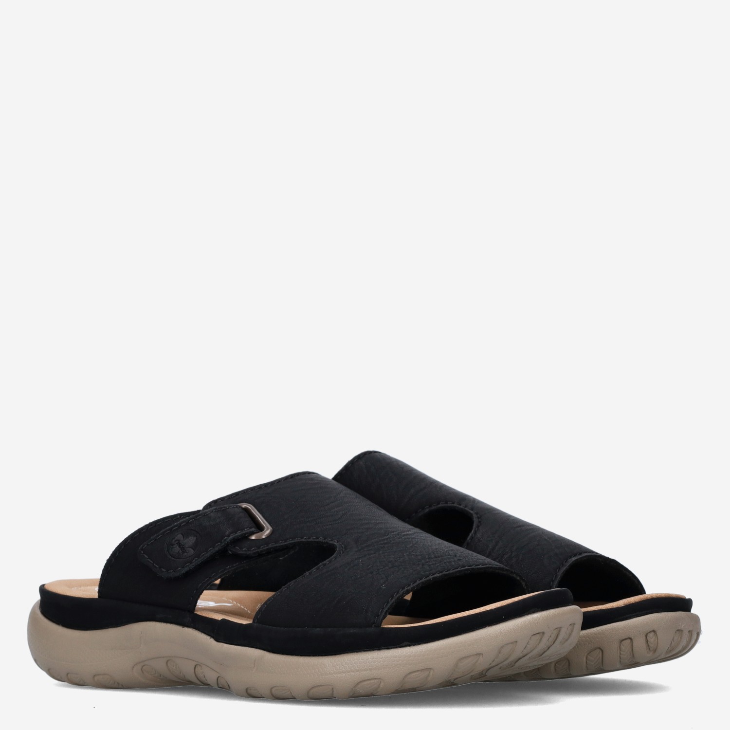Deze zwarte Nabukino damesslipper van Rieker is gemaakt van leer in combinatie met synthetische materialen. Deze slipper is voorzien van een klittenbandsluiting voor een perfecte fit. Combineer de instapper met een korte broek!