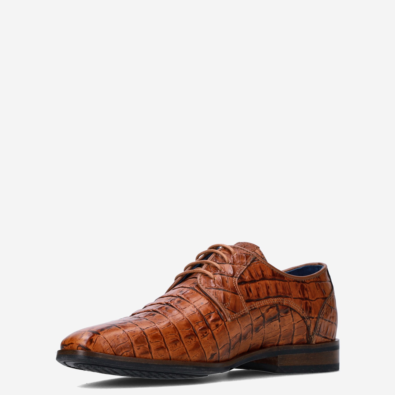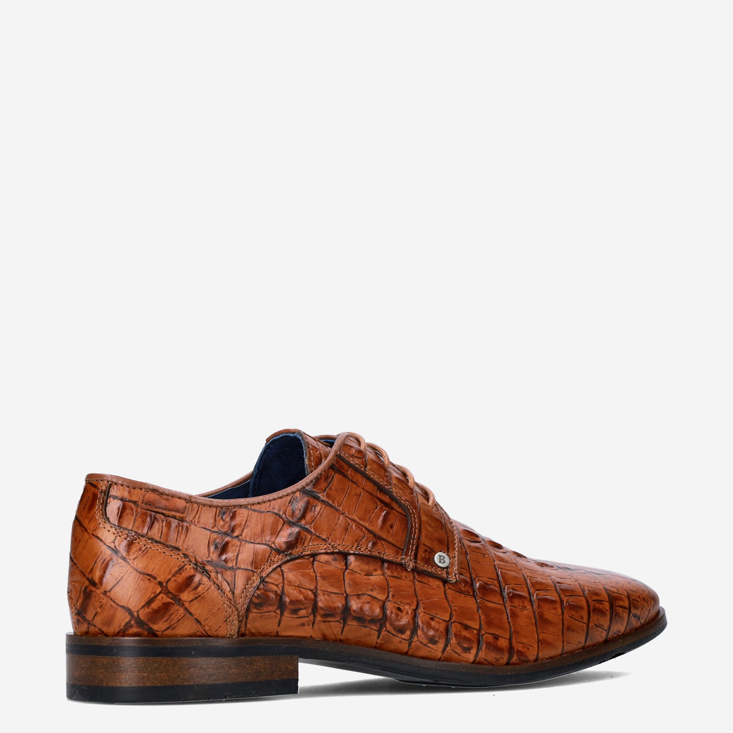 Deze bruine, cognac gekleurde Berkelmans Oulton herenschoen is gemaakt van hoogwaardig leer. Draag deze veterschoen met krokodillenprint onder een nette pantalon of combineer hem met een jeans voor een casual-look.