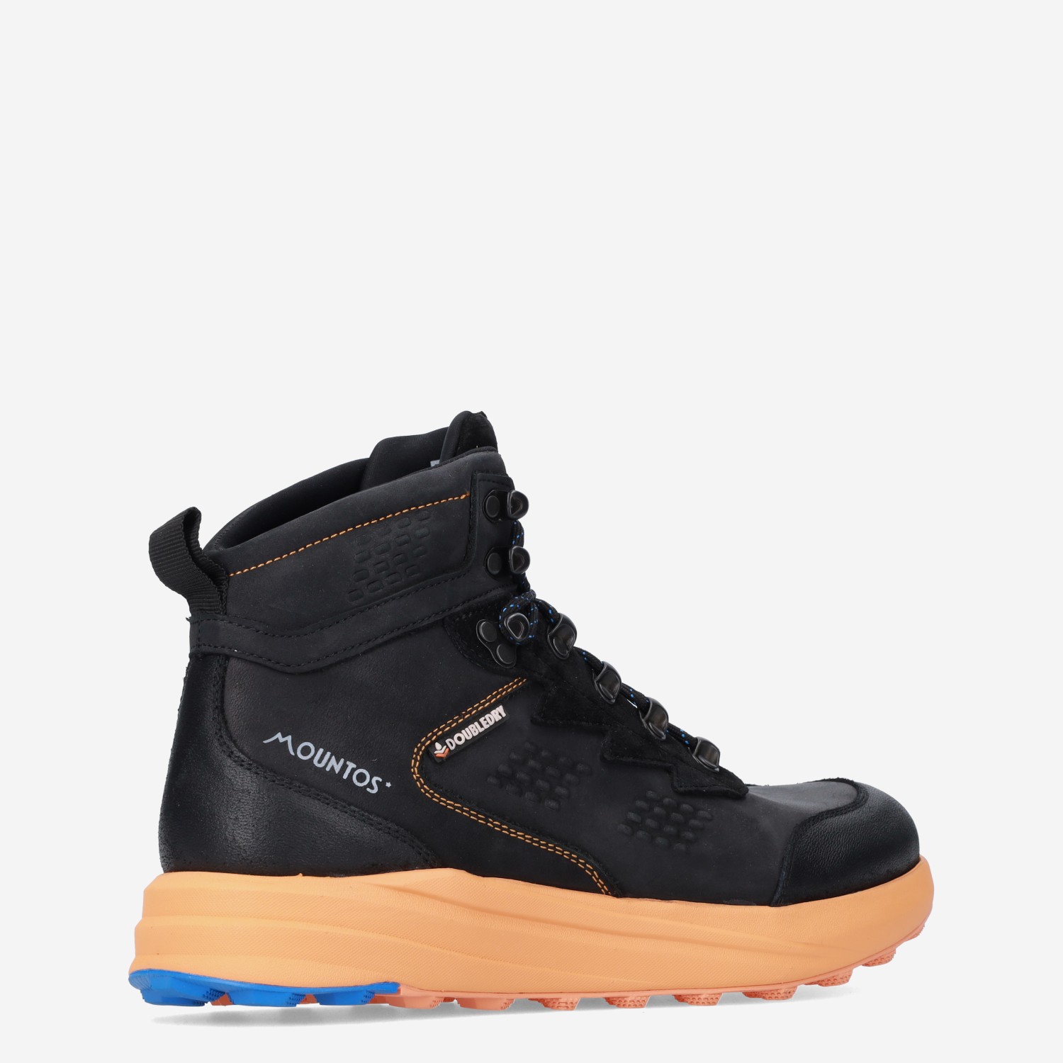 Deze zwarte Ourea High herenschoen van Mountos is gemaakt van nubuckleer in combinatie met gerecycled materialen. Deze hoge wandelschoen is voorzien van een stevige Virbam loopzool in een blauw met oranje design. De schoen heeft een vetersluiting en het voetbed is uitneembaar. Combineer deze comfortabele wandelschoen met een fijne broek en trek lekker de natuur in!