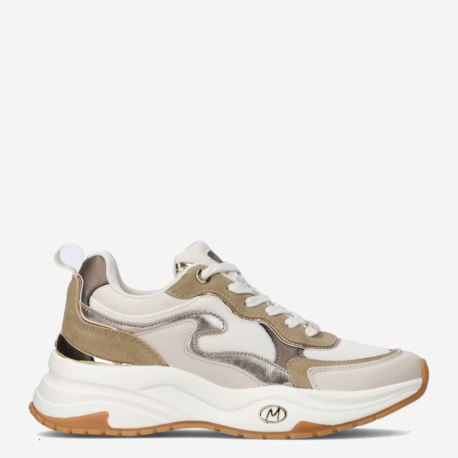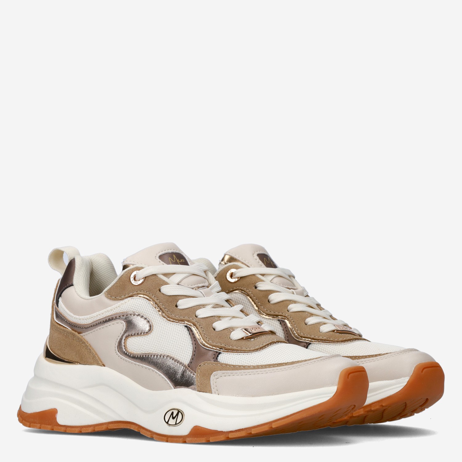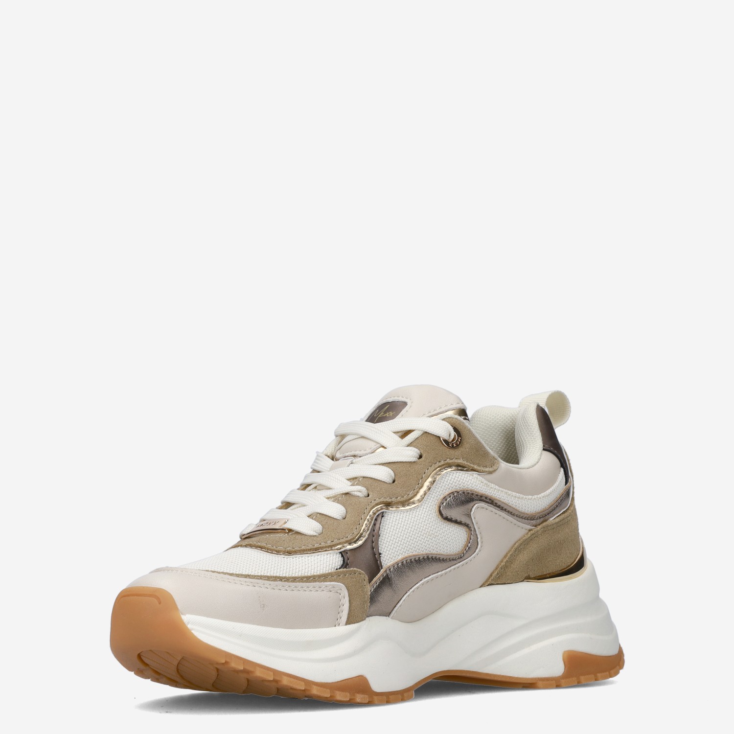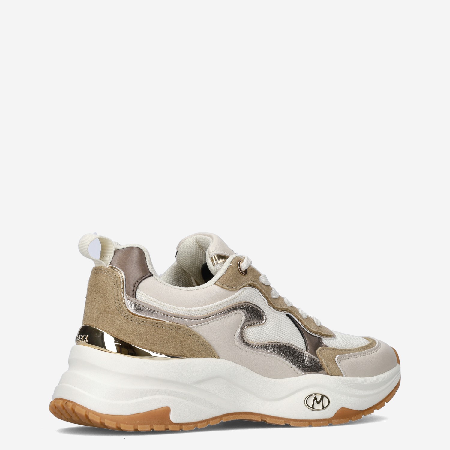 Deze beige Palma Ora damessneaker van Mexx is gemaakt van imitatieleer in combinatie met textiel. Deze toffe sneaker met metallic accenten kun je goed combineren onder elke outfit!