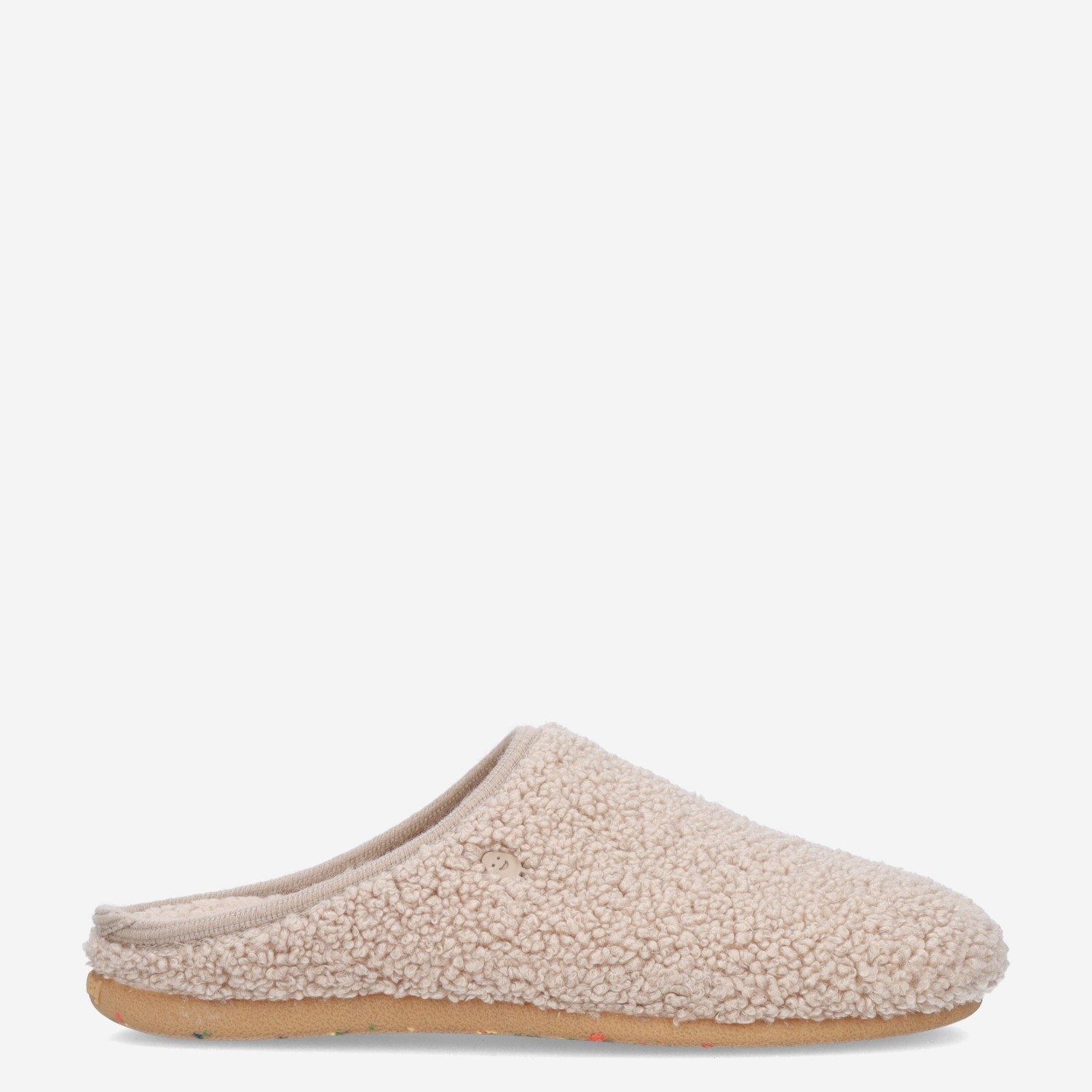 Deze beige Hot Potatoes damespantoffel is gemaakt van textiel, in combinatie met natuurlijk rubber en gerecyclede kunststof snippers. Deze pantoffel is voorzien van een zachte voering en mooie teddystof, heerlijk om binnenshuis te dragen!
