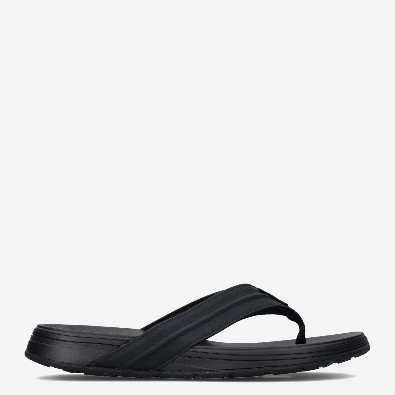 Deze zwarte Patino herenslipper van Skechers is gemaakt van leer in combinatie met synthetische materialen. Deze teenslipper is voorzien van een comfortabel voetbed en kun je goed combineren onder een korte broek!