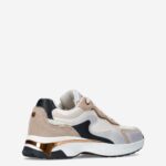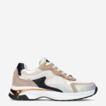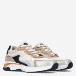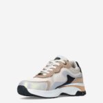 Deze offwhite multicoloured Portia Love damessneaker van Mexx is gemaakt van leer & imitatieleer in combinatie met textiel. De sneaker is voorzien van metallic, gouden accenten en heeft verschillende overlays. Combineer deze stijlvolle sneaker onder een pantalon.