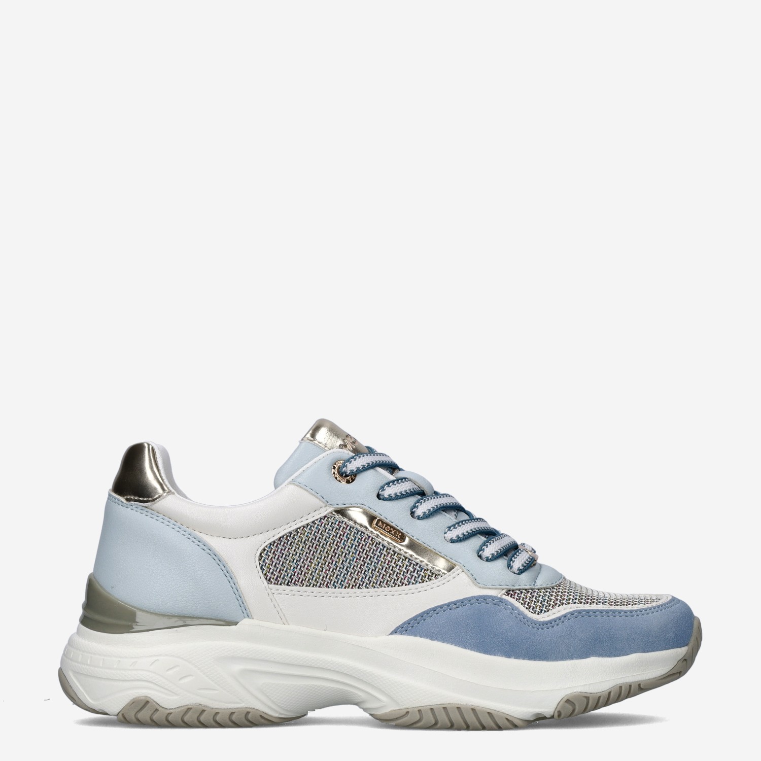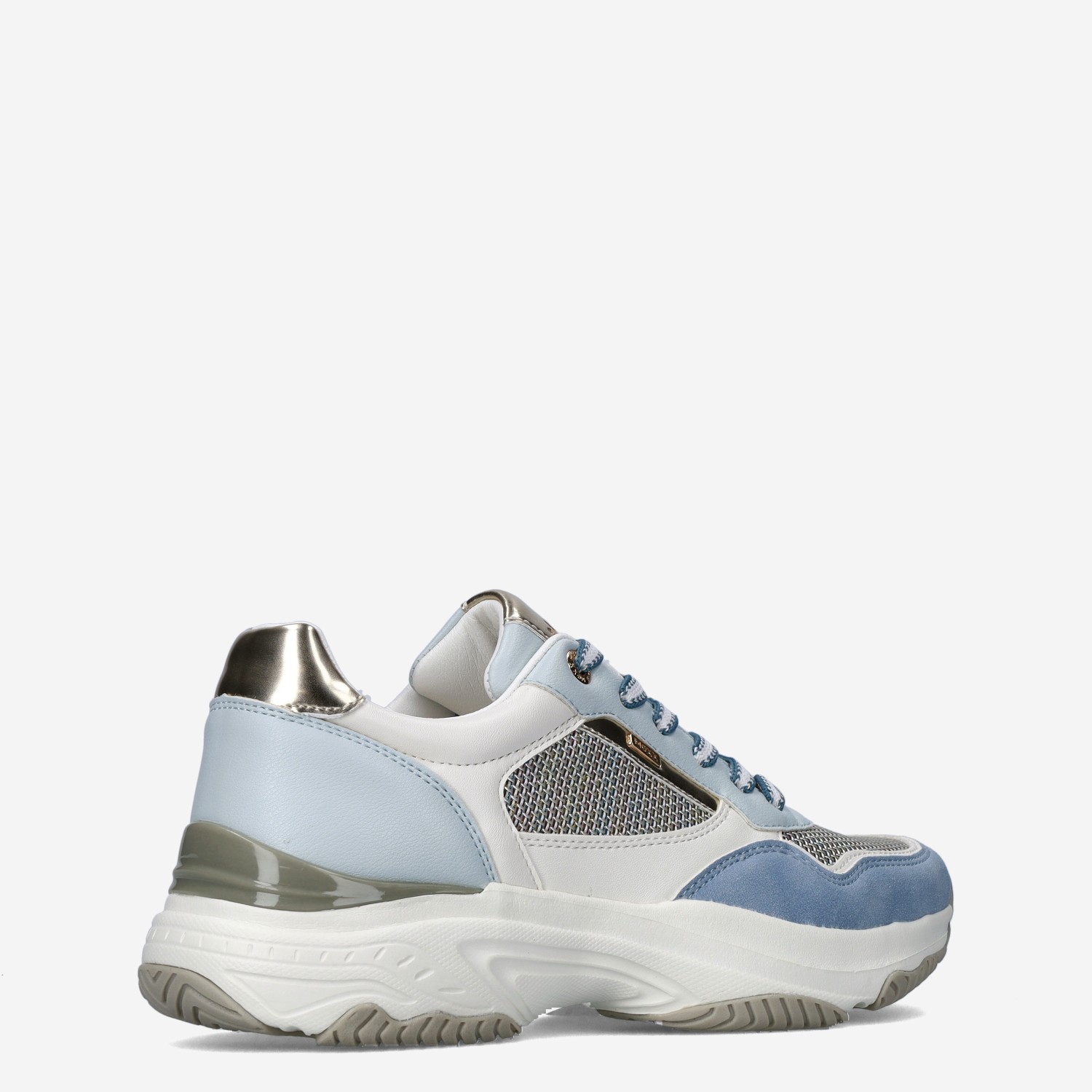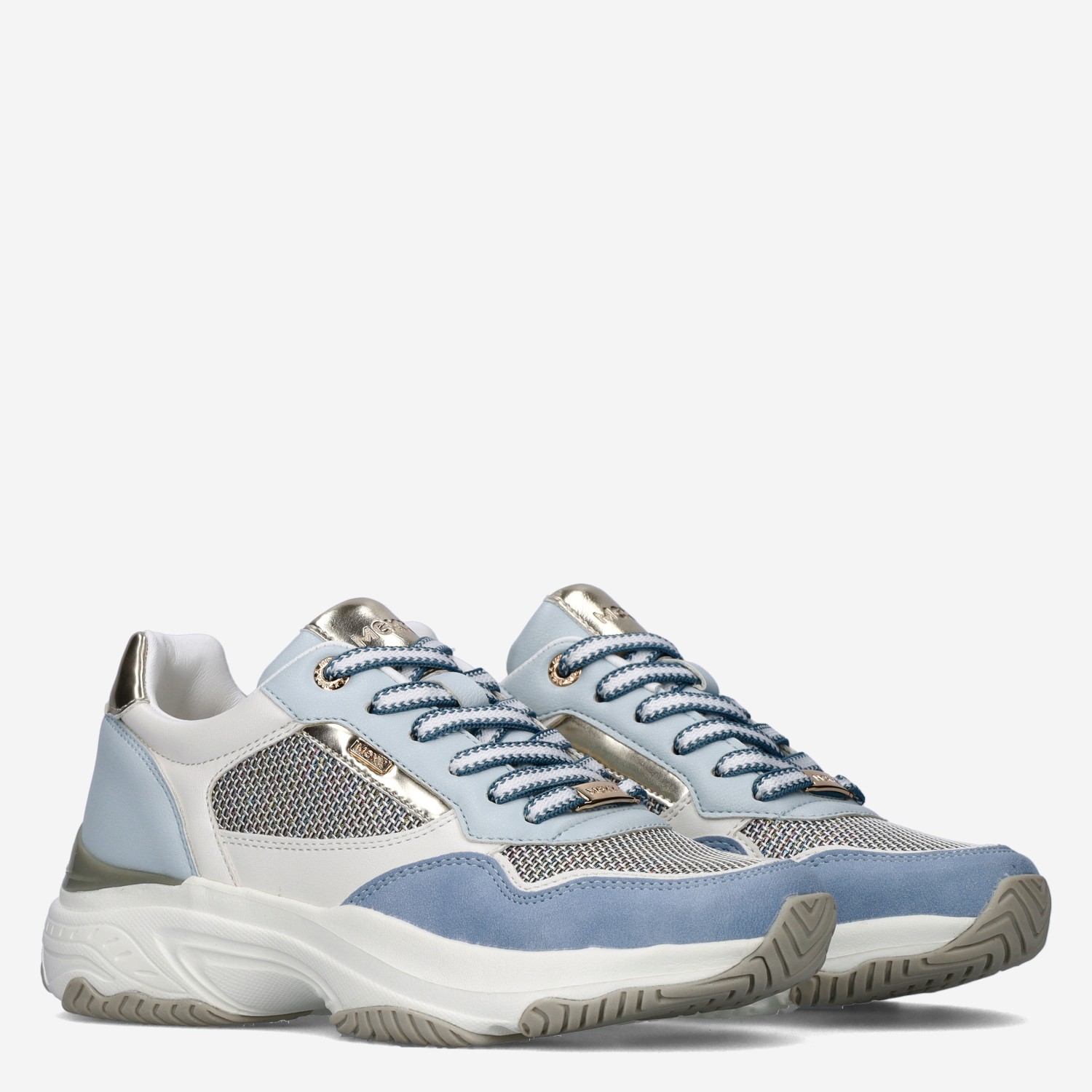 Deze licht blauwe, offwhite Radja Pax damessneaker van Mexx is gemaakt van suède in combinatie met imitatieleer en textiel. Deze sneaker is voorzien van gouden accenten en een kleurrijke veter. Combineer deze sneaker met jouw favoriete outfit!