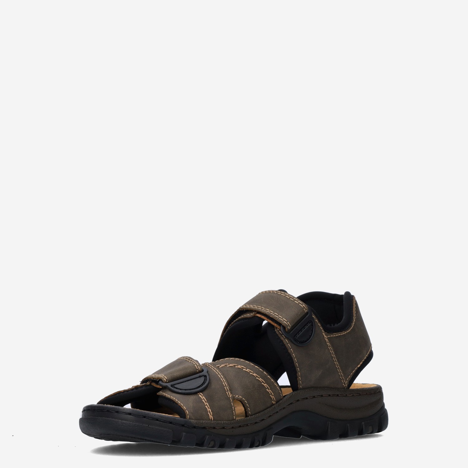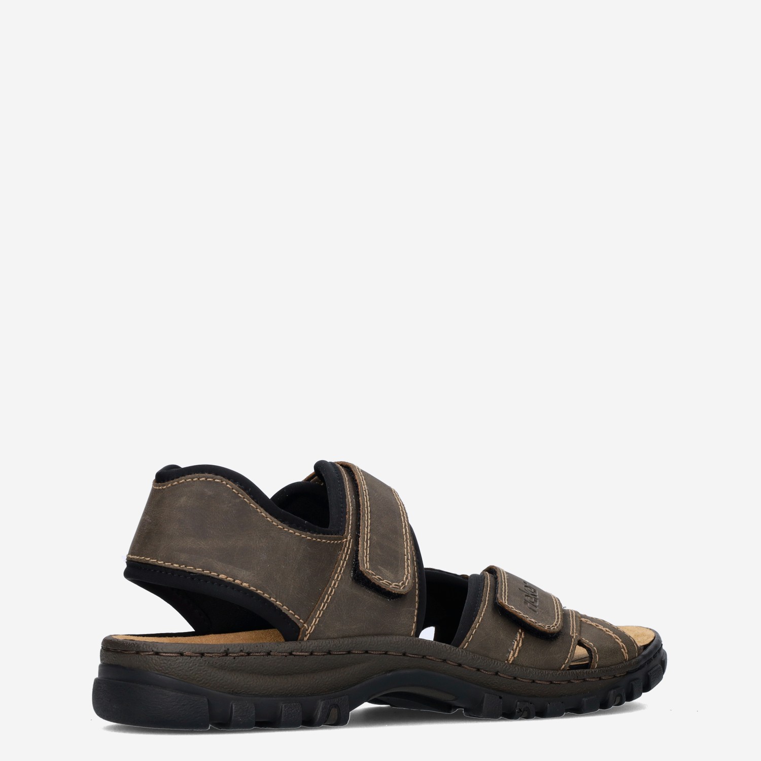 Deze bruine Bastia herensandaal van Rieker is gemaakt van stevig leer in combinatie met textiel. De sandaal is voorzien van een klittenbandsluiting en kun je goed combineren met een cargobroek of korte broek.