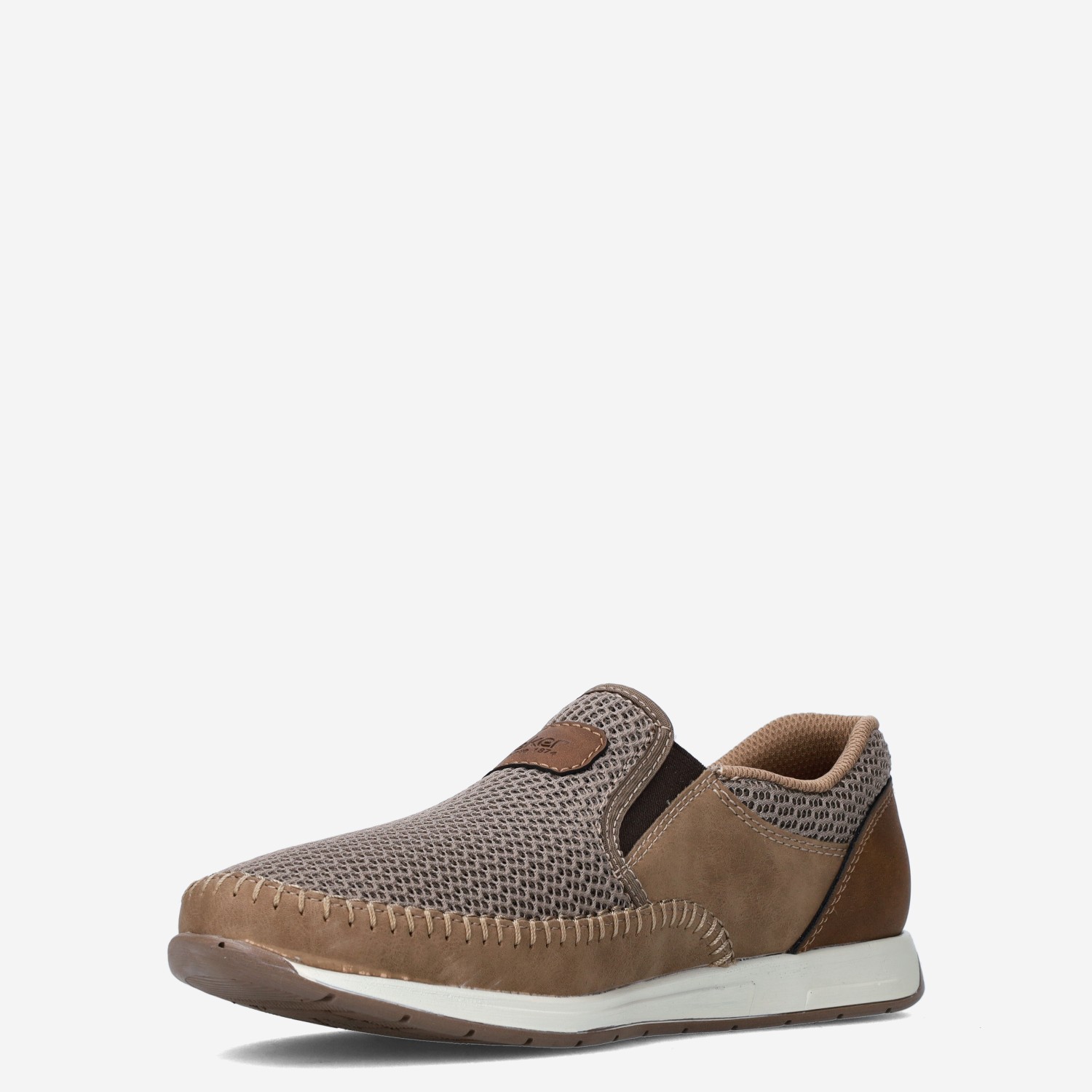 Deze bruine heren instapper van Rieker is gemaakt van leer.