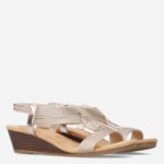 Deze roségouden Bridge damessandaal is gemaakt van imitatieleer in combinatie met een elastieken band. De sleehak heeft een hakhoogte van ongeveer 5-6cm en door de elastieken band kun je gemakkelijk in en uit deze sandaal stappen. Combineer deze zomerse sandaal met een mooie jurk!