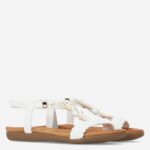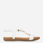 Deze witte Bridge damessandaal is gemaakt van imitatieleer in combinatie met een elastieken band. De sandaal heeft verschillende ‘kralendetails’ en door de elastieken band kun je gemakkelijk in en uit stappen. Combineer deze zomerse sandaal met een fijne rok.