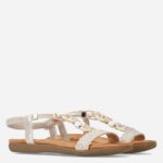 Deze gouden Bridge damessandaal is gemaakt van imitatieleer in combinatie met een elastieken band. De sandaal heeft verschillende ‘kralendetails’ en een zacht voetbed. Combineer deze sandaal met een korte broek of rok!
