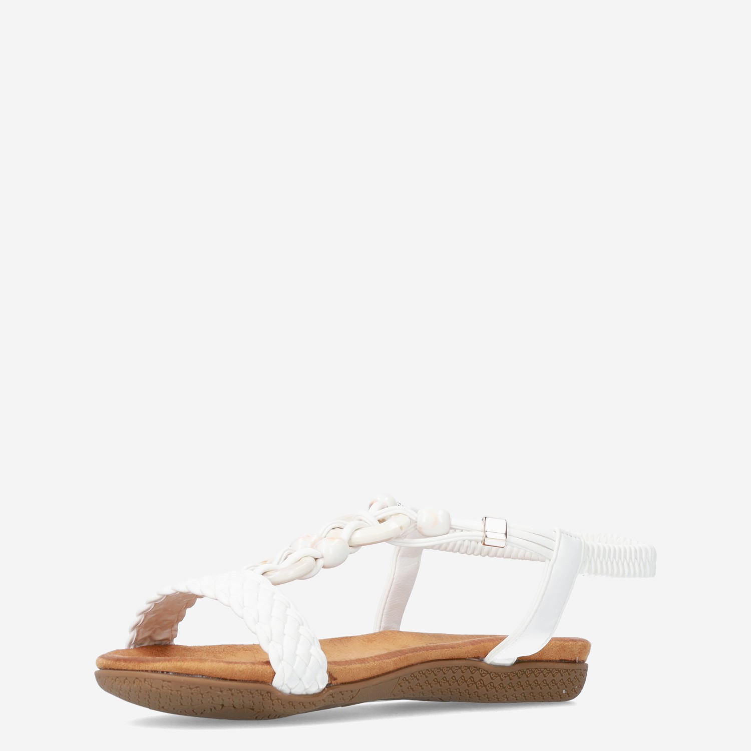 Deze witte Bridge damessandaal is gemaakt van imitatieleer in combinatie met een elastieken band. De sandaal heeft verschillende ‘kralendetails’ en een zacht voetbed. Combineer deze sandaal met een fijne jeans.