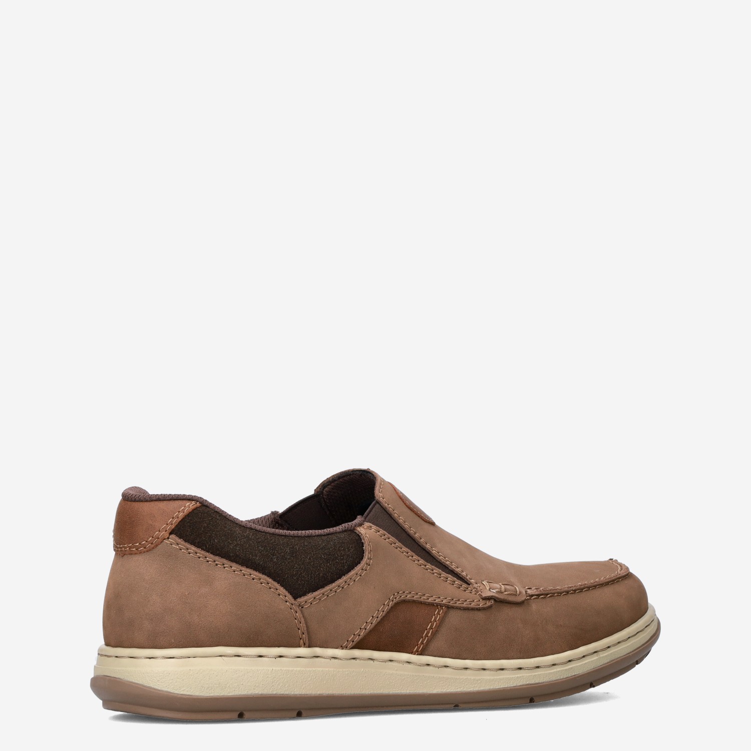 Deze bruine Rieker Sarajevo hereninstapper is gemaakt van nubuckleer, in combinatie met textiel. Draag deze instapper met een jeans of pantalon.