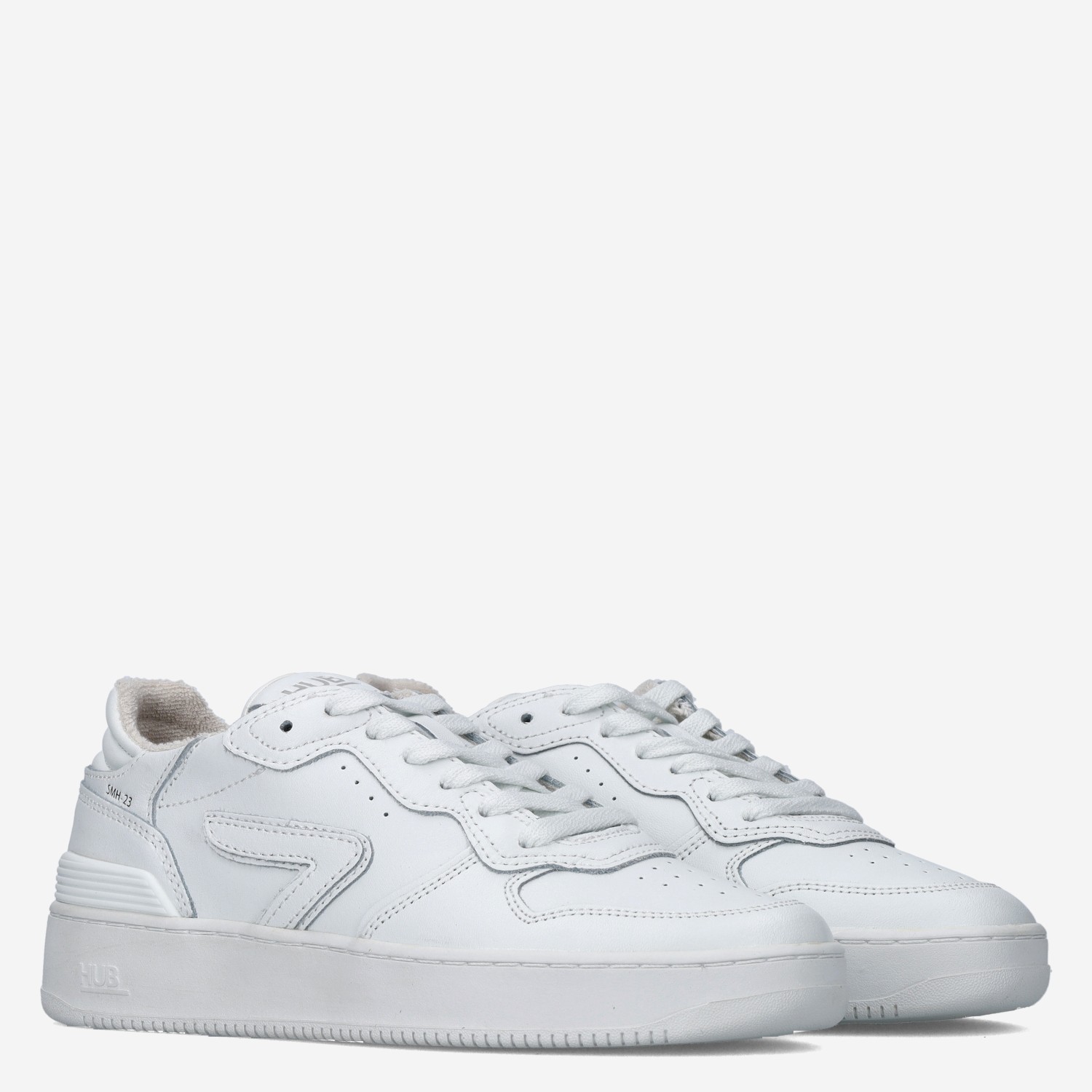 Deze witte HUB Smash L31 damessneaker is gemaakt van leer in combinatie met textiel. Deze sportieve sneaker is voorzien van een inlegzool met gel-padding die zorgt voor extra demping. Combineer deze sneaker met jouw favoriete outfit!