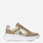 Deze beige met gouden Sneaker voor dames van Bridge is gemaakt van leer in combinatie met imitatieleer. Combineer deze sneaker met een jeans!