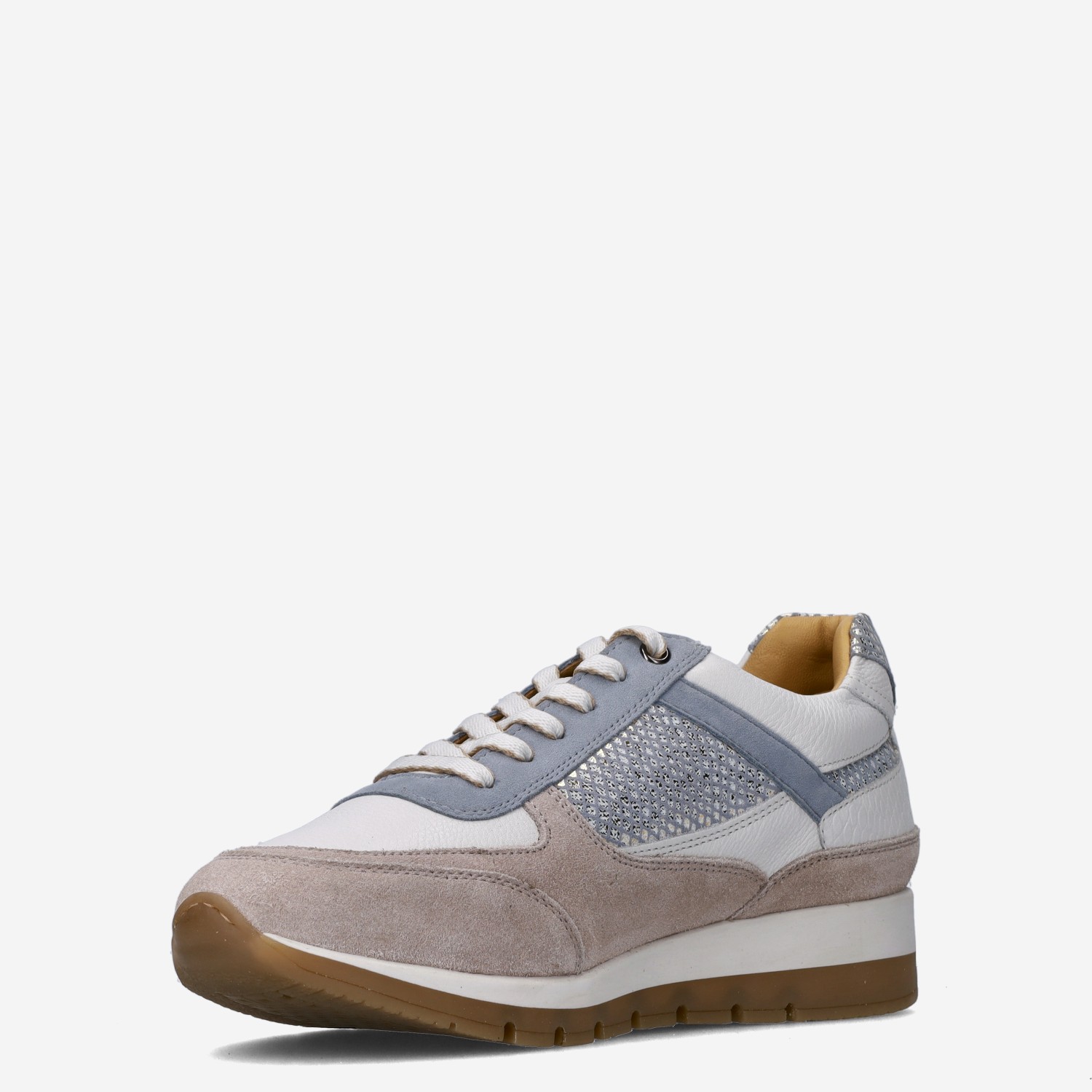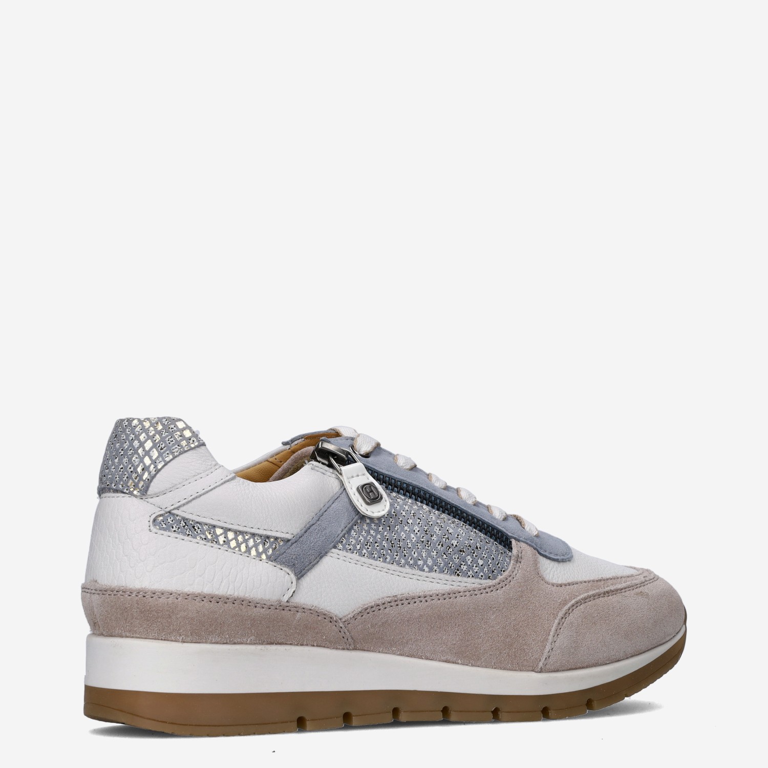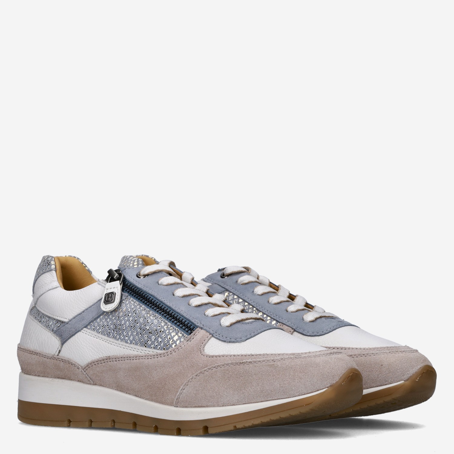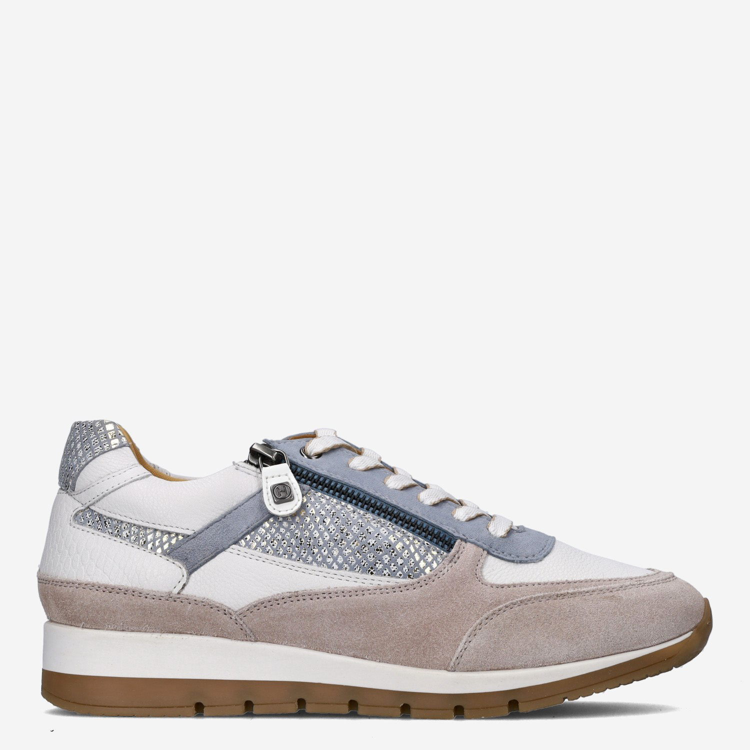 Deze wit met beige Sneaker H damesschoen van Helioform is gemaakt van verschillende leersoorten. De sneaker is voorzien van zowel een rits- als vetersluiting voor een gemakkelijke instap. Combineer de schoen met een jeans.